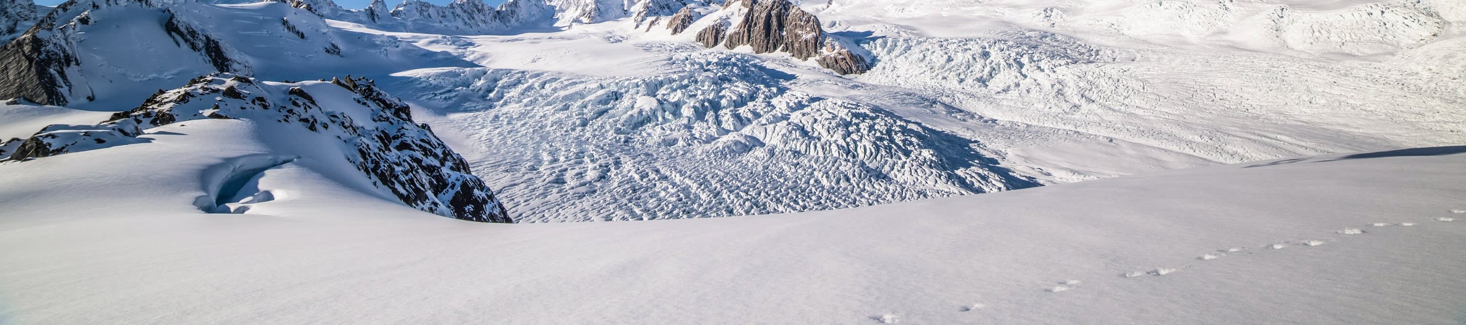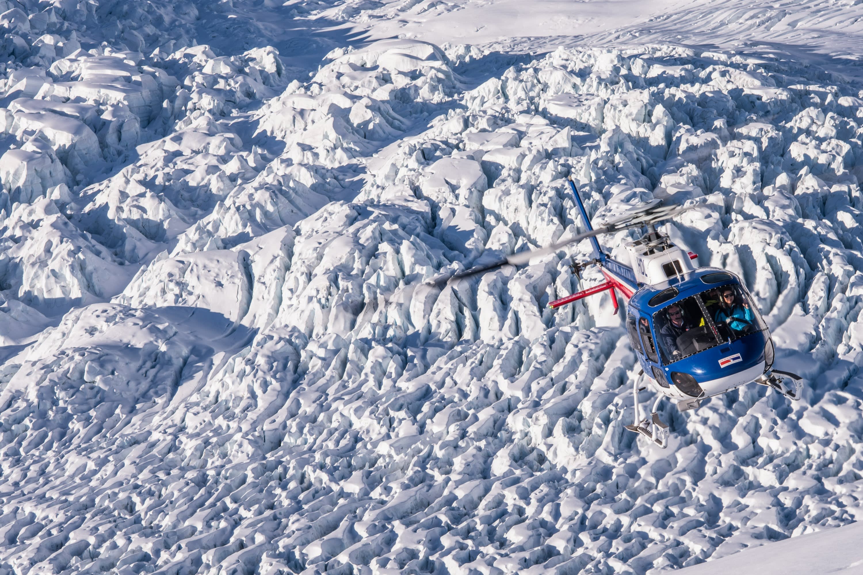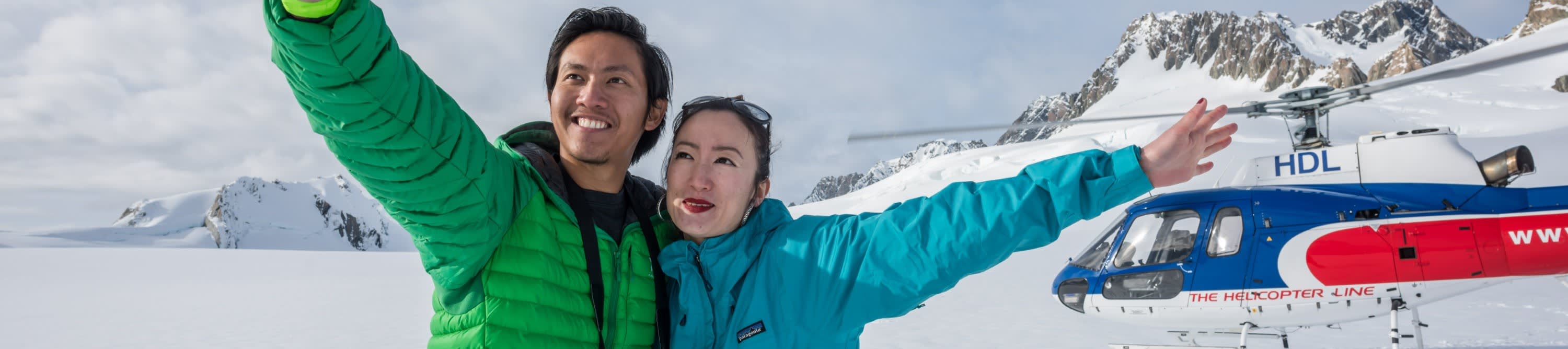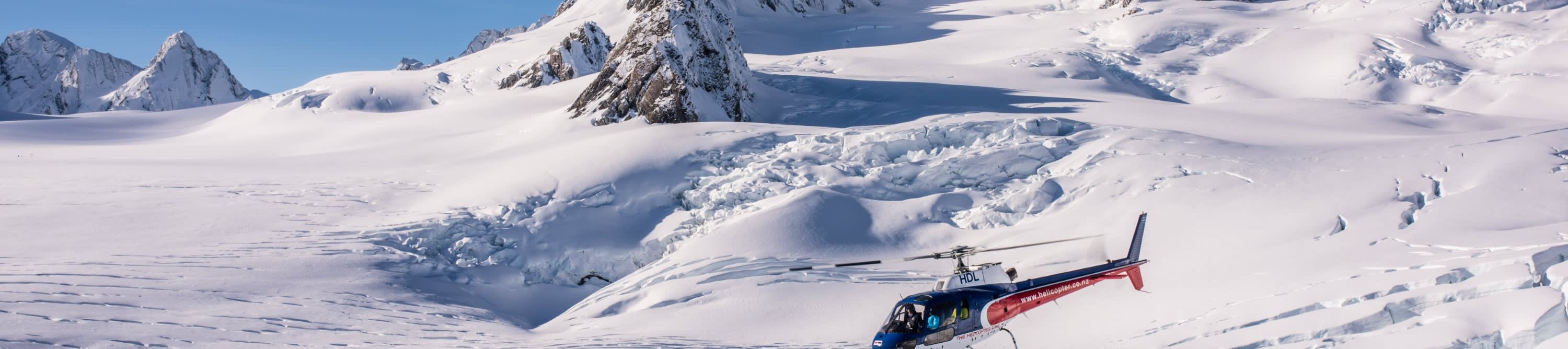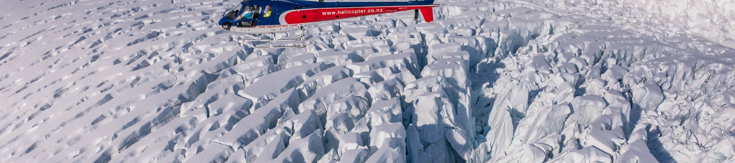프란츠 요제프 빌리지 또는 폭스 빙하 빌리지에서 출발하여 프란츠 요제프 빙하와 폭스 빙하 위를 모두 비행하세요. 마을 위를 먼저 날아오른 다음 빙하의 흐름을 따라 상류까지 높이 올라갑니다. 빙하 꼭대기의 눈 덮인 곳에 착륙하여 빙하가 아래로 깎아낸 길을 살펴보세요.