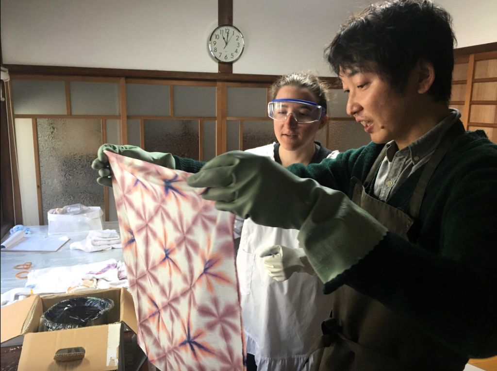 아즈치모모야마 시대에 500년 전 번성했던 염색 기법인 츠지-가-하나에 대한 소개로 시작합니다. 보관된 사진, 복원된 직물, 완성된 작품을 통해 그 역사와 중요성을 알아보세요. 기모노와 직물을 감상하며 이 공예에 대한 깊은 이해를 얻으세요. 다음으로, 염색 과정 시연을 관람한 후, 판으로 천을 고정하는 방식인 셋카 시보리를 직접 체험해 보세요. 천을 접고, 고정하고, 염료에 담그면 기하학적이고 꽃무늬 패턴이 나타납니다. 안내에 따라 자신만의 실크 스톨을 접고 고정한 다음, 키후네의 보름달 물로 준비된 식물성 염료로 염색해 보세요. 꼭두서니 오렌지, 금화, 락 레드, 퍼플 락, 인디고와 같은 한두 가지 색상을 선택할 수 있습니다. 헹구고 말린 후, 완성된 스톨은 당일 바로 가져갈 수 있는 세상에 하나뿐인 작품이 됩니다.