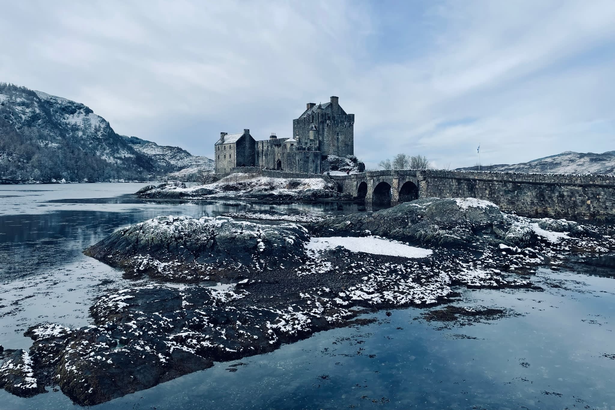 * 그림 같은 풍경으로 둘러싸인 섬 위의 상징적인 요새, 아일린 도난 성을 방문해보세요.