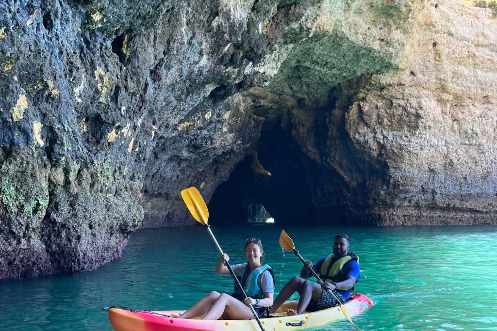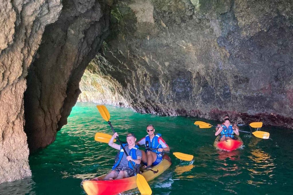 재미있고 안전한 가이드 카약 투어를 통해 알부페이라의 숨막힐 듯 아름다운 해안선을 발견하세요. 짧은 안전 설명을 들은 후, 카약에 올라타고 숙련된 가이드를 따라 맑고 투명한 바다를 탐험하세요.