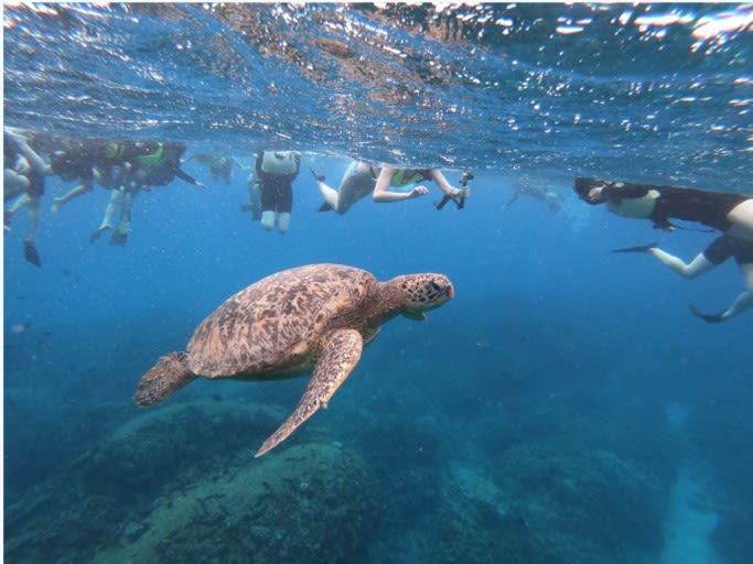 한인가이드와 함께 요트를 타고 와이키키 앞 바다에서 즐기는 '하와이 야생 거북이 스노클링 투어'