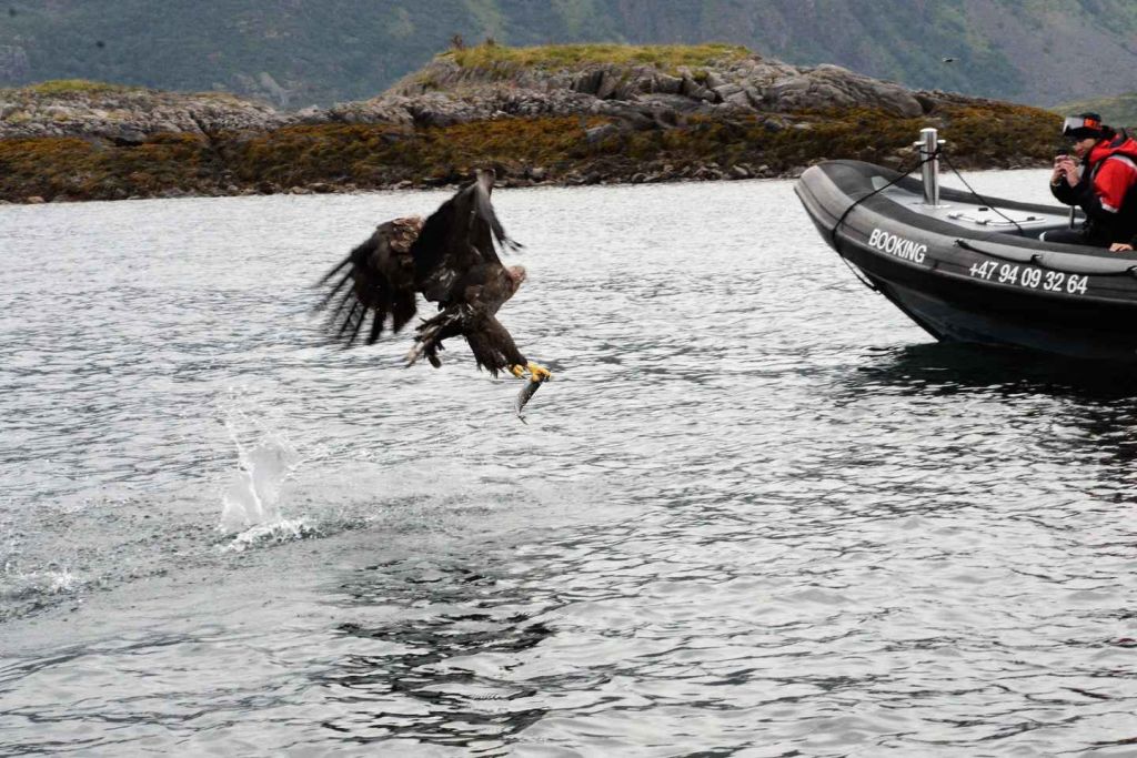 라프트순데트(Raftsundet)를 항해하며 북유럽 최대의 독수리(날개폭 최대 2.65m)를 만나보세요. 물고기를 잡아먹는 독수리들의 장관을 목격하며, 보트에 매우 가까이 다가오는 모습을 통해 독보적인 사진 기회를 잡을 수 있습니다.