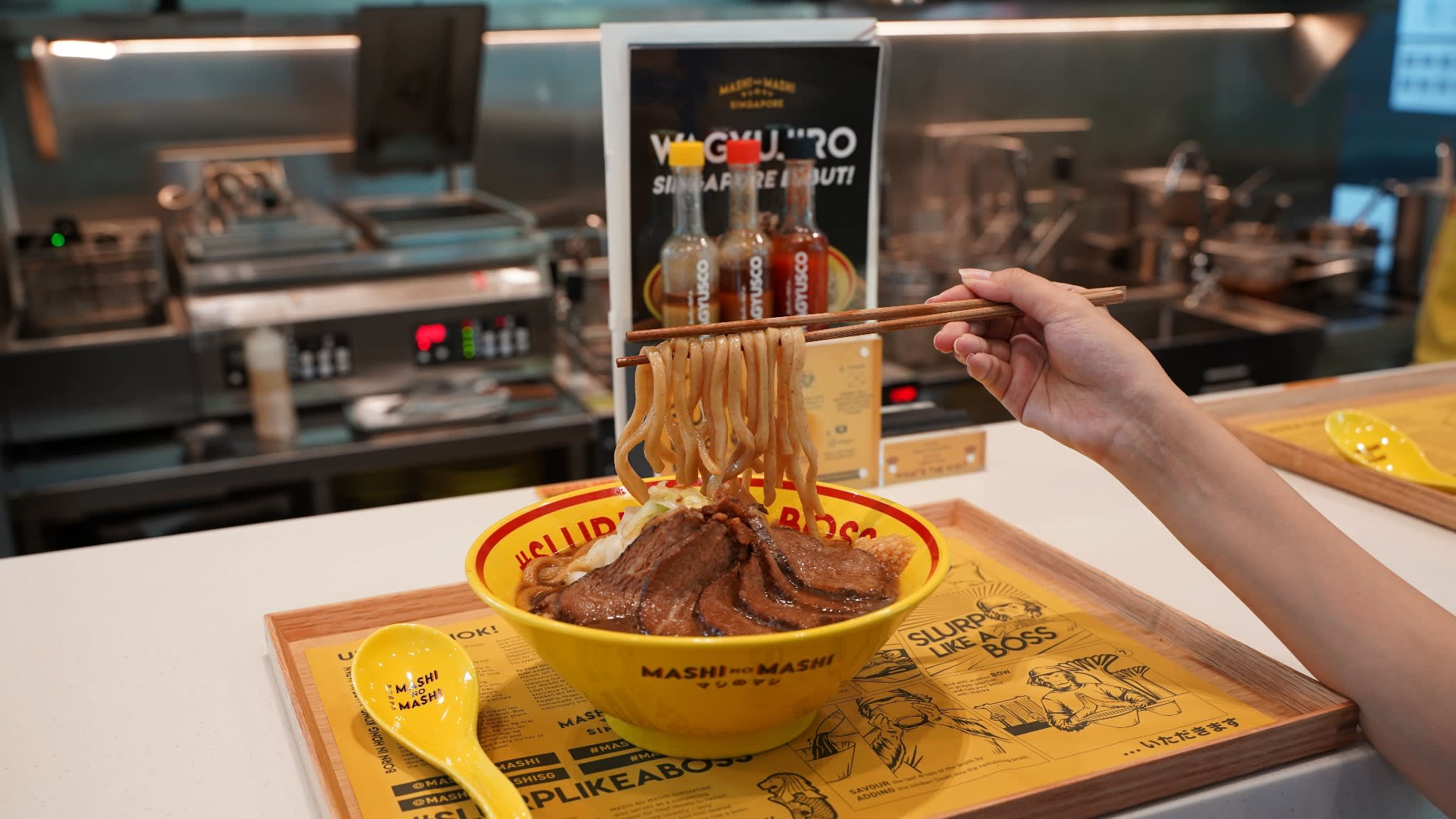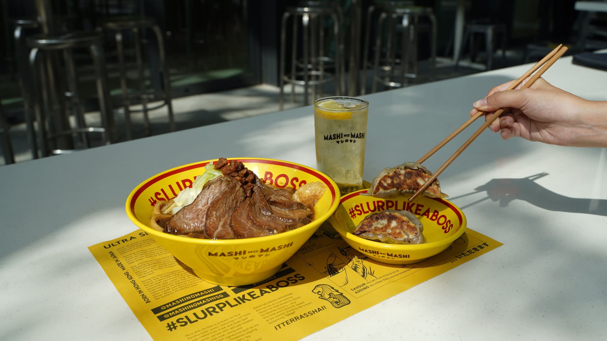 세계 최초이자 유일한 100% 와규 라멘을 제공하는 것으로 유명한 MASHI NO MASHI("더욱 더")는 주요 수도에서 팝업 세션이 매진된 혁신적이고 고급스러운 와규 제품으로 전 세계 식당 손님을 사로잡았습니다. 오늘, WAGYUMAFIA의 창립자인 셰프 히사토 하마다가 싱가포르에 첫 번째 MASHI NO MASHI 매장을 오픈하면서 챔피언 등급의 컷과 비교할 수 없는 요리 경험을 동남아시아에 선보입니다. MASHI NO MASHI 메뉴의 각 항목은 풍부한 우마미 풍미와 미묘한 단맛으로 유명한 셰프 히사토가 직접 선택한 오자키 소고기로만 만들어졌습니다.