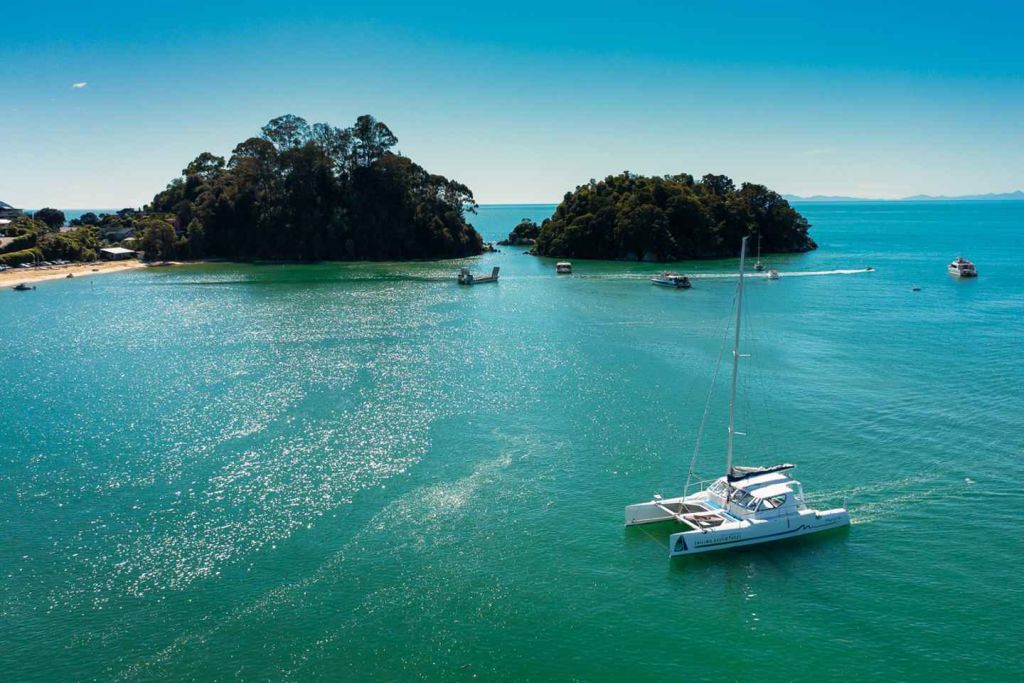 카이테리토리 해변에서 수상 택시를 타고 30분간 아벨 태즈만 국립공원의 앵커리지 베이로 향하는 경치 좋은 크루즈를 타고 하루 종일 모험을 시작하세요. 오전 9시 또는 오전 10시 30분 중 출발 시간을 선택하세요.