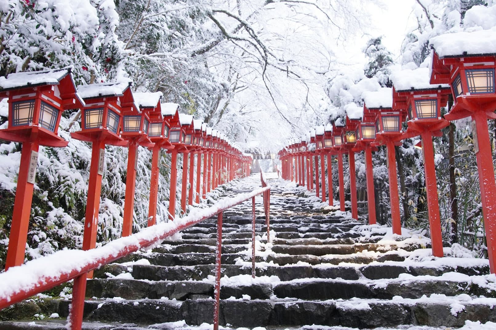 * 기후네 비경 탐험: 푸른 등불이 켜진 돌계단을 걷고, 물점 점괘의 천년 아취를 체험해 보세요.