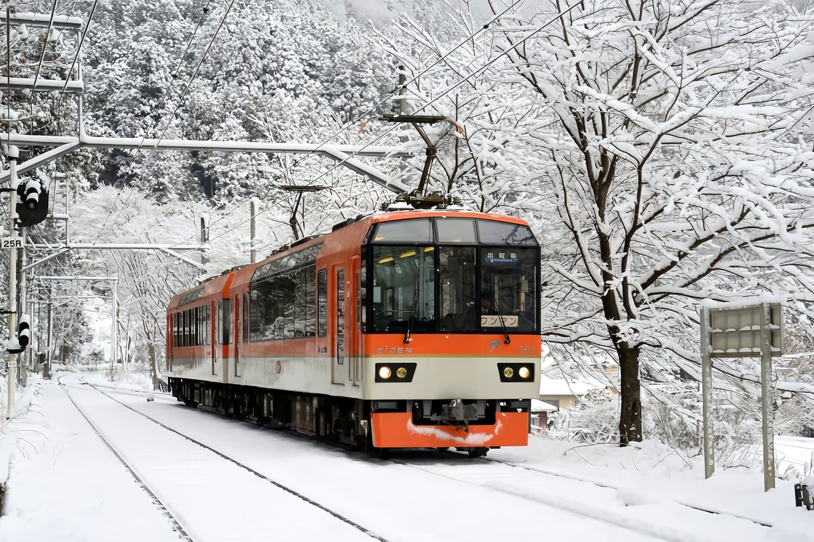 * 에이잔 전철 여행: 에이잔 전차를 타고 산림 속 비경을 누비며 이동하는 전망창의 시정을 느껴보세요.