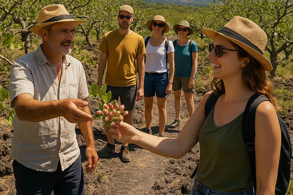 가이드와 함께 피스타치오 밭을 둘러보는 가이드 투어를 시작하세요. 브론테 피스타치오의 역사와 지역 경제에서 피스타치오가 차지하는 중요성에 대해 알아보세요.