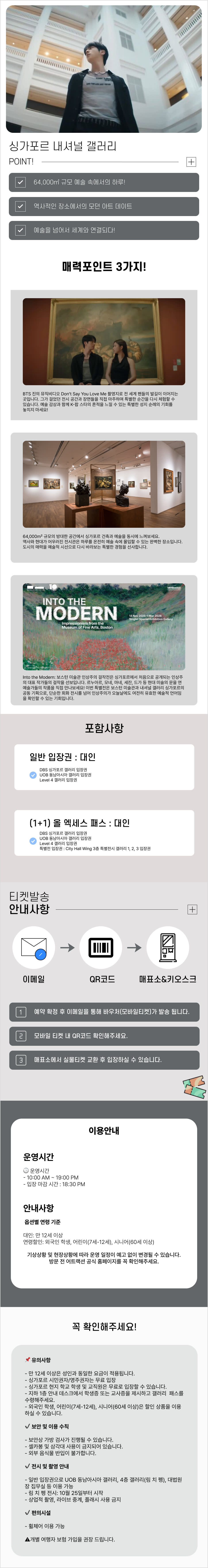 1. 구매(결제 완료) 후 이메일로 E-Voucher를 받게 됩니다. 만약 메일이 도착하지 않았다면, 발송된 티켓 메일이 간혹 스팸으로 분류되기도 하니 스팸 메일함을 확인해 주세요. 2. 키오스크에서 E-voucher의 QR코드를 모바일 또는 프린트 인쇄물로 보여주세요. 3. 갤러리패스 수령 후 즐거운 관람을 즐겨보세요!
