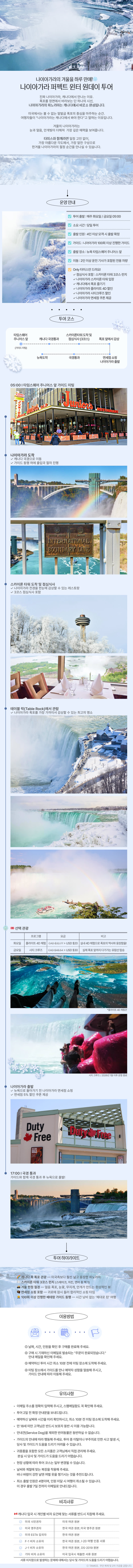 타 회사 대비 가장 합리적인 가격으로 나이아가라 폭포를 경험할 수 있는 당일 투어 상품입니다.