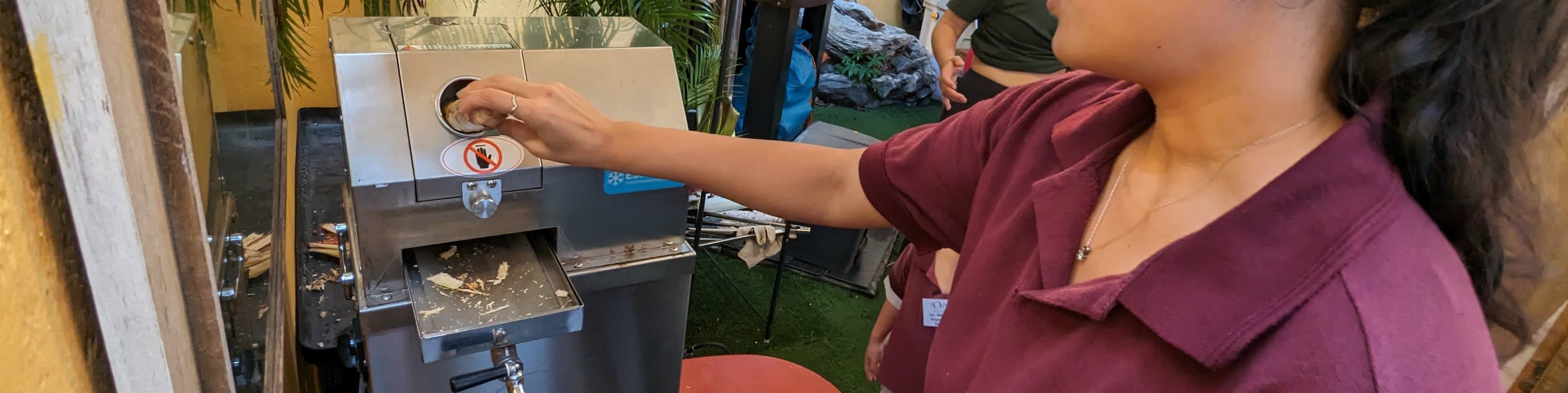 사탕수수도 잘게 썰어 실제 분쇄기로 시원한 간식을 만들어 보세요!