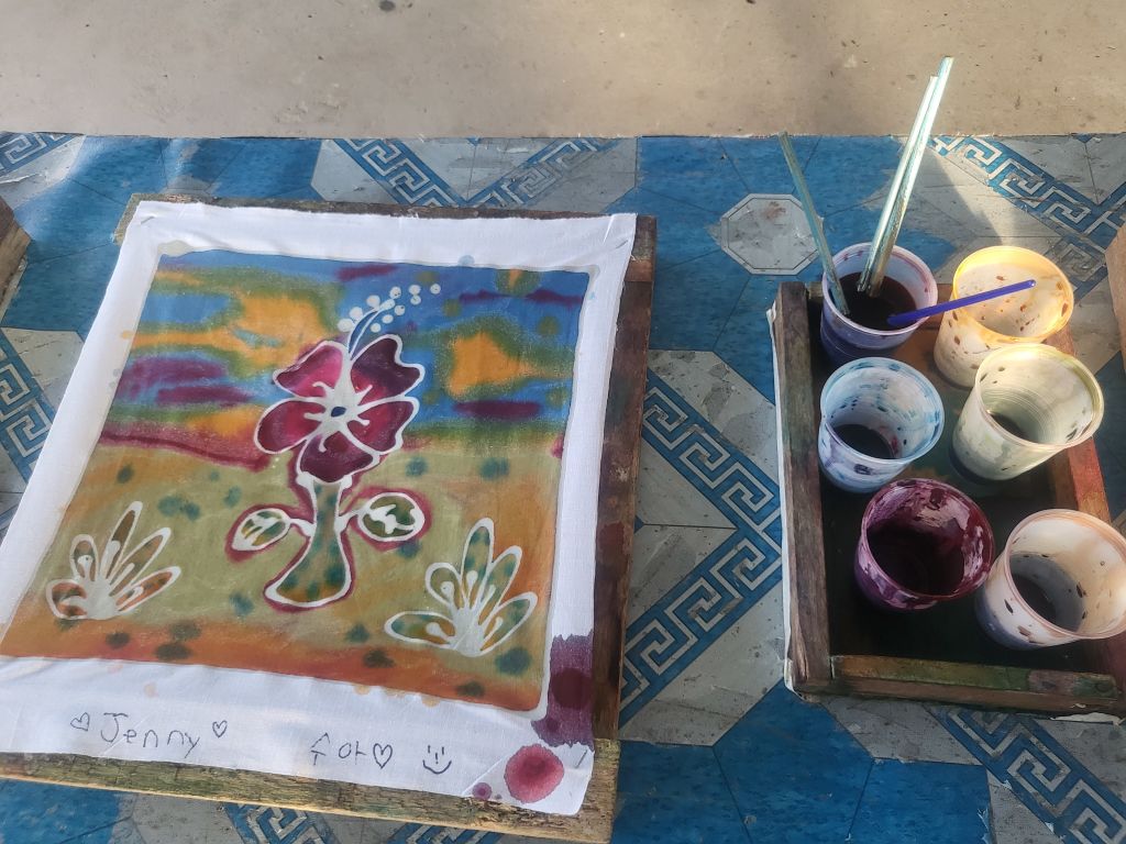 알록달록 예쁜 색감으로 표현된 바틱 결과물입니다.