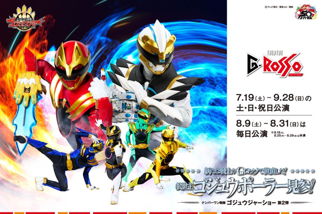 고쥬저들이 넘버원이 되기 위해 시어터 G롯소에서 치열한 전투를 벌입니다! 영웅들을 응원하고 신나는 쇼에 참여하세요!