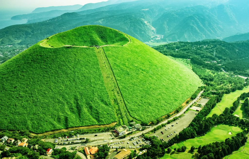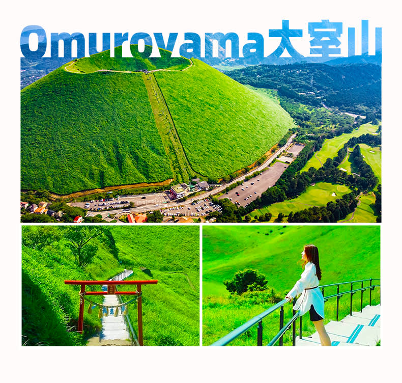 * 오무로산: 신이 한 입 베어 문 말차 경단 분화구가 푸른 숲을 쏟아내고, 케이블카가 그릇 가장자리를 따라 구름 속으로 미끄러져 마치 인간 세상의 푸르름을 하늘에 맛보게 하려는 듯합니다.