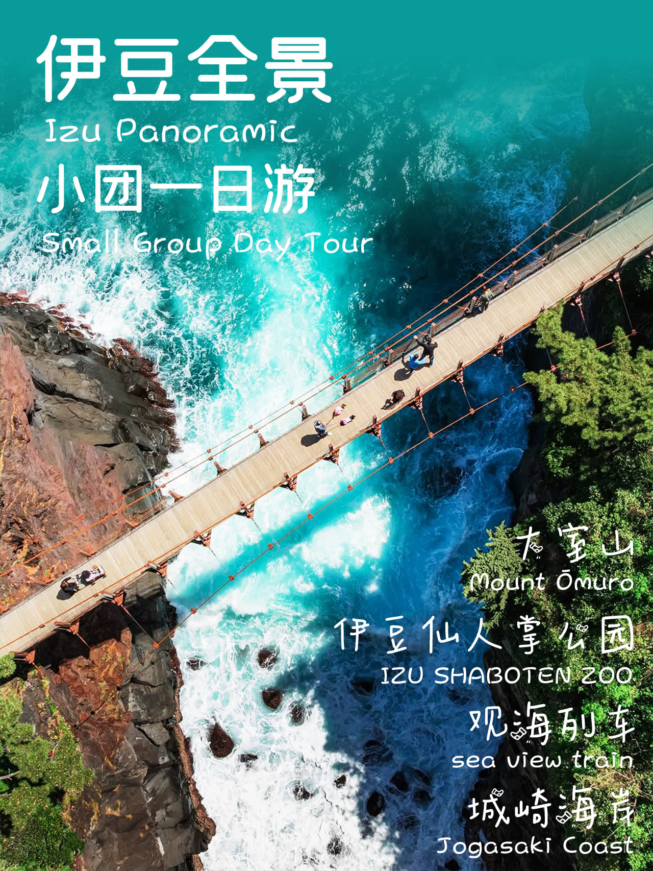이즈 오무로산, 조가사키 해안, 바다 감상 열차, 산과 바다가 어우러진 360° 파노라마 풍경을 만끽하세요 9인 소규모 그룹, 매일 출발, 빡빡한 일정으로 기다림 최소화 도쿄 시내 호텔 픽업/샌딩, 중국어 운전기사, 순수 관광, 쇼핑센터 방문 없음 오무로산 케이블카, 조가사키 해안 현수교, 바다 감상 열차 및 이즈 사보텐 동물원(카피바라 온천, 다육 식물) 방문