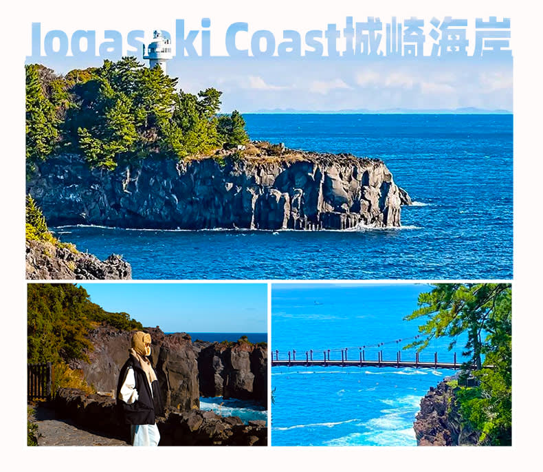 * 조가사키 해안: 성난 파도가 조각한 푸른 시편 검은 바위와 흰 파도가 절벽에서 영원히 대치하고, 현수교는 허공에 떠 있는 현과 같고, 파도는 바위 위에 덧없이 사라지는 시구를 써내려 갑니다.