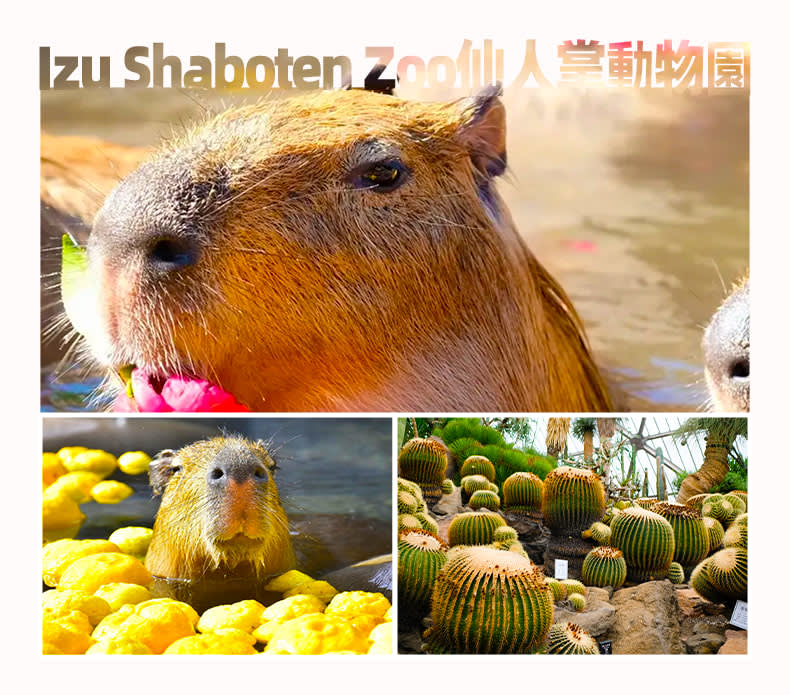 * 이즈 사보텐 동물원: 카피바라 온천 천국 수천 종의 다육 식물과 수백 종의 동물이 있는 온천 낙원입니다.