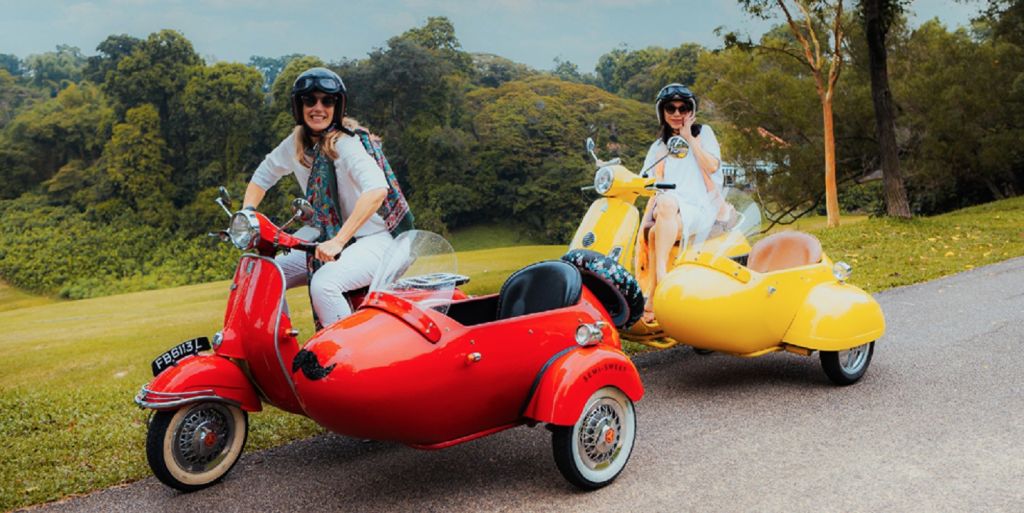 빈티지 사이드카를 타고 크레이지 리치 아시안 촬영 장소들을 둘러 보세요.