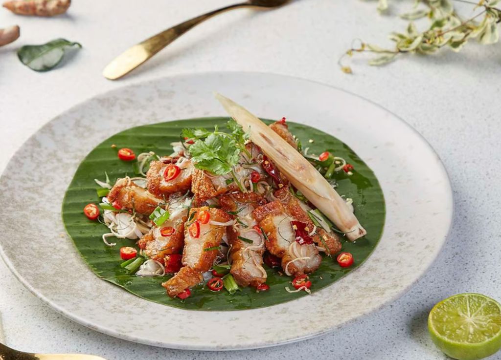 무 그롭 팓 타크라이 [크리스피 포크, 레몬그라스 소스, 타이 허브, 자스민밥]