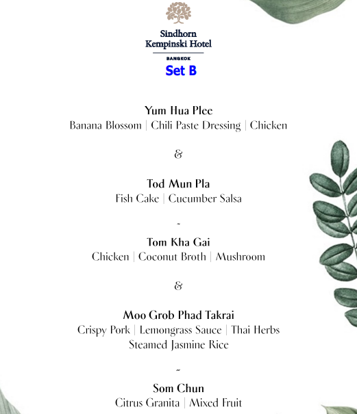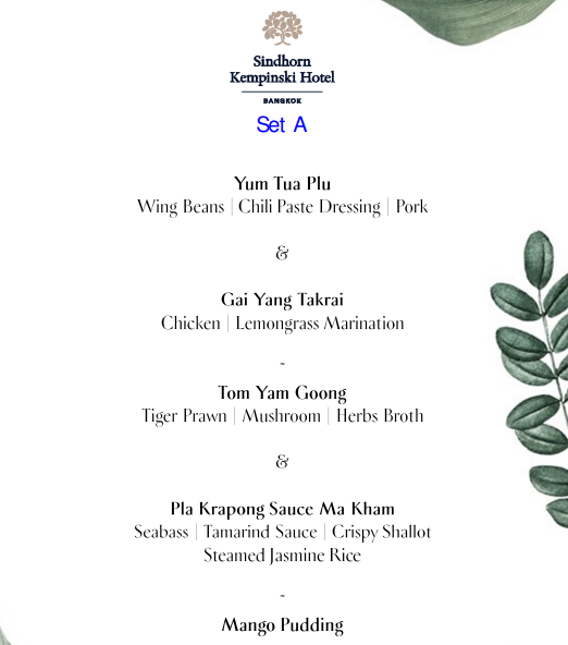 * 요즘 가장 인기많은 호텔중 하나인 신돈 켐핀스키 호텔에서 진행하는 타이 세트예요. 호텔 투숙 고객이 아니더라도 이용이 가능해요.