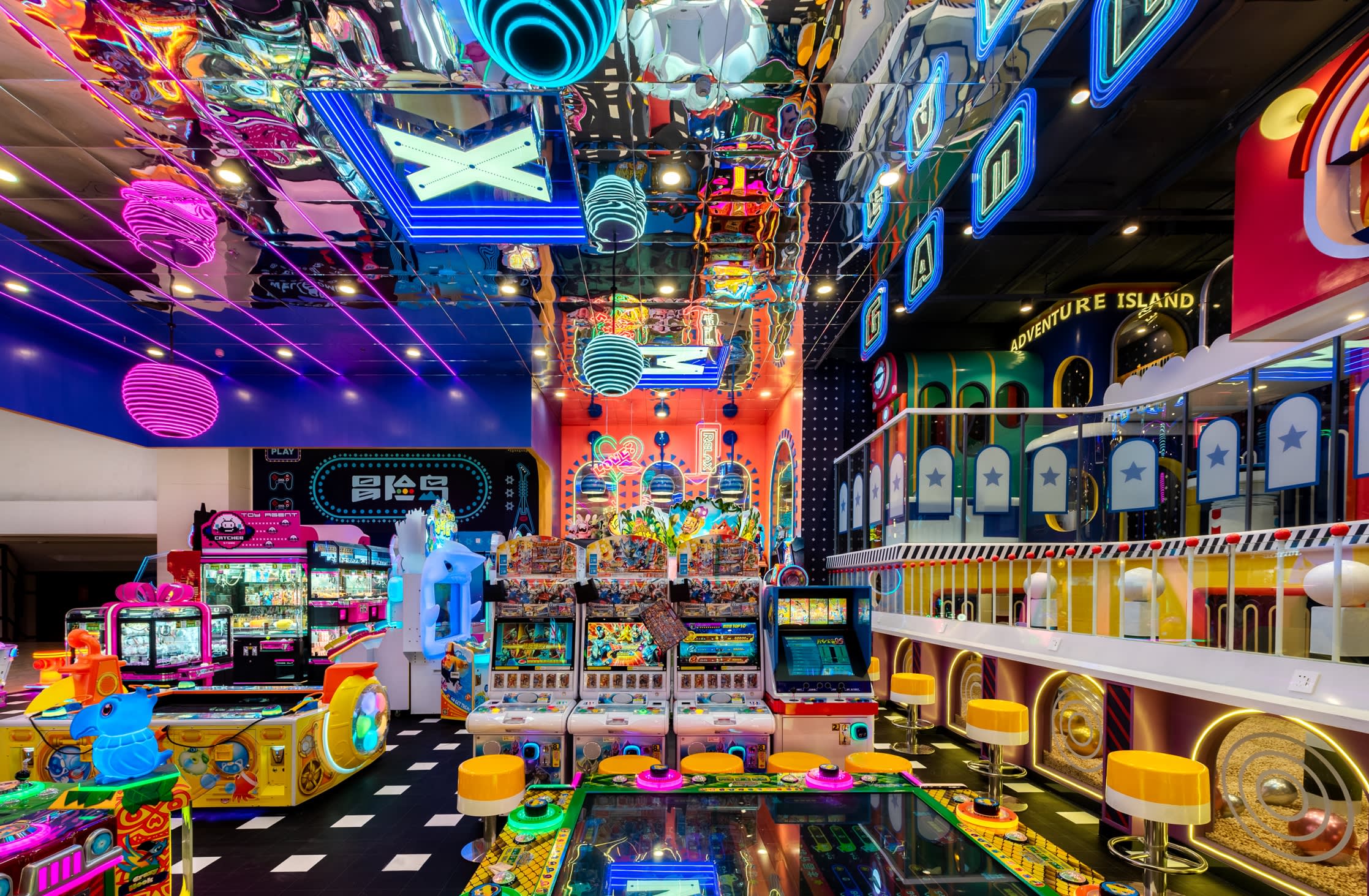 * 어드벤처 아일랜드 가족 엔터테인먼트 센터(화위안청점)는 선전 난산 화위안청 상업지구 내 1500㎡가 넘는 대형 몰입형 가족 놀이 공간으로, 약 9m 높이의 탁 트인 구조를 갖추고 있으며 동화적 디자인과 사이버펑크 요소를 융합하여 몽환적이면서도 탐험 정신을 불러일으키는 동화 왕국을 만들었습니다.