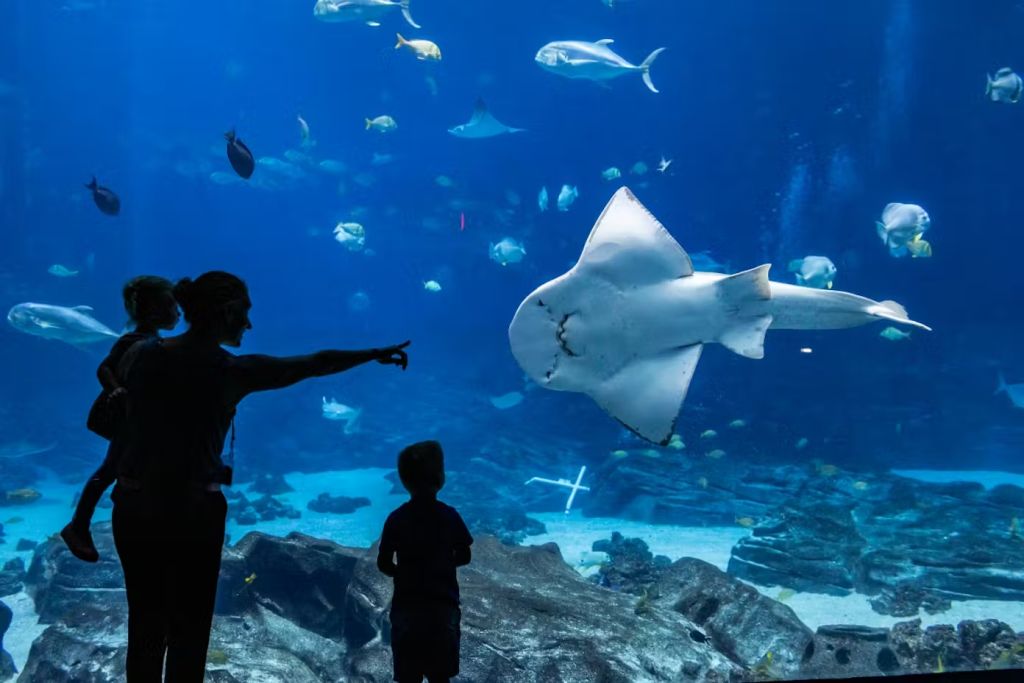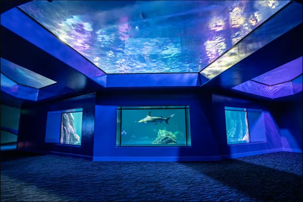 • 100피트(약 30미터) 오션 보이저 터널을 걸으며 고래상어, 만타 가오리, 수천 마리의 물고기들을 가까이에서 관찰하세요.