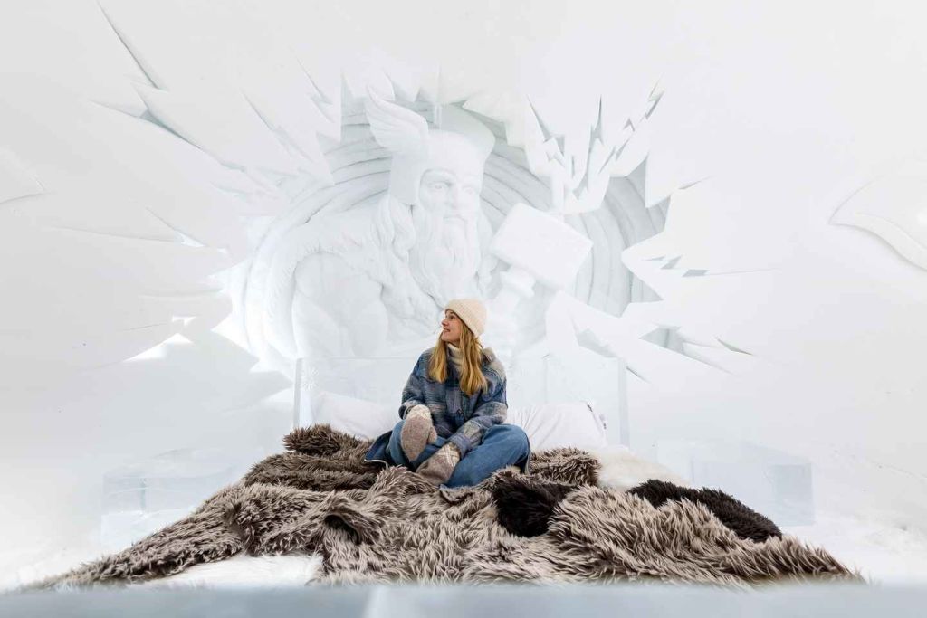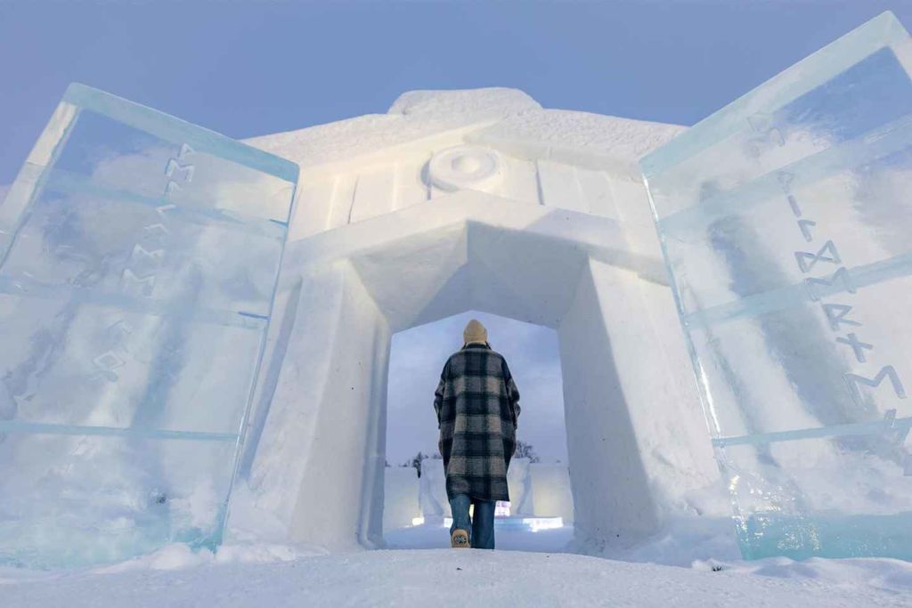 눈과 얼음 조각으로 이루어진 매혹적인 전시 작품을 감상하세요.