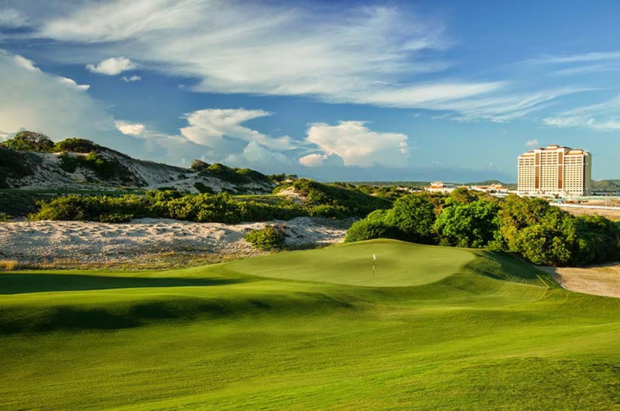 이 리조트는 전설적인 골퍼 Greg Norman에 의해 디자인 되었으며 난이도는 수 많은 높이 변화와 변수를 가지고 있어 높은 수준에 속합니다.