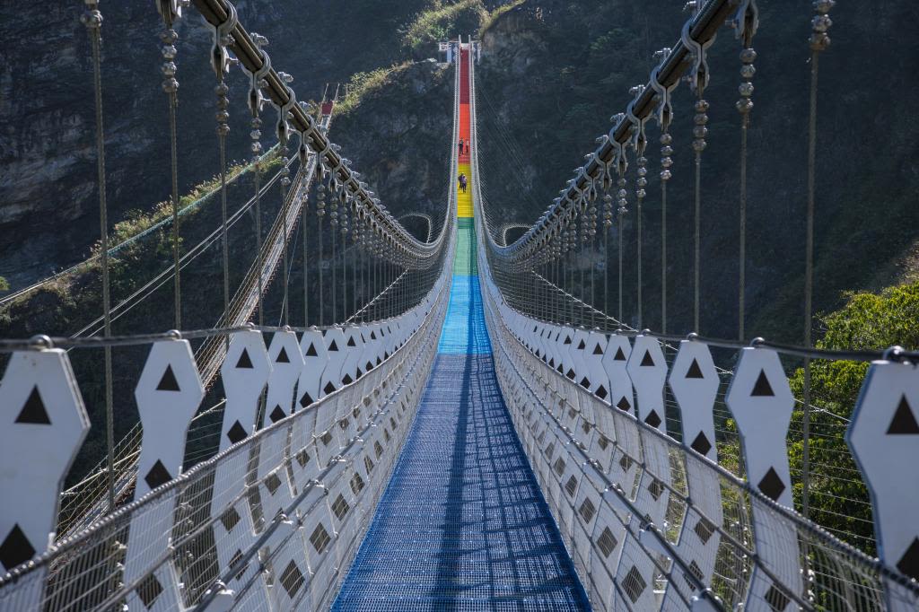 * 다리 표면은 무지개 일곱 색깔로 디자인되었으며, 50미터마다 한 가지 색상이 있어 멀리서 보면 마치 무지개가 산림 사이에 걸려 있는 듯합니다.