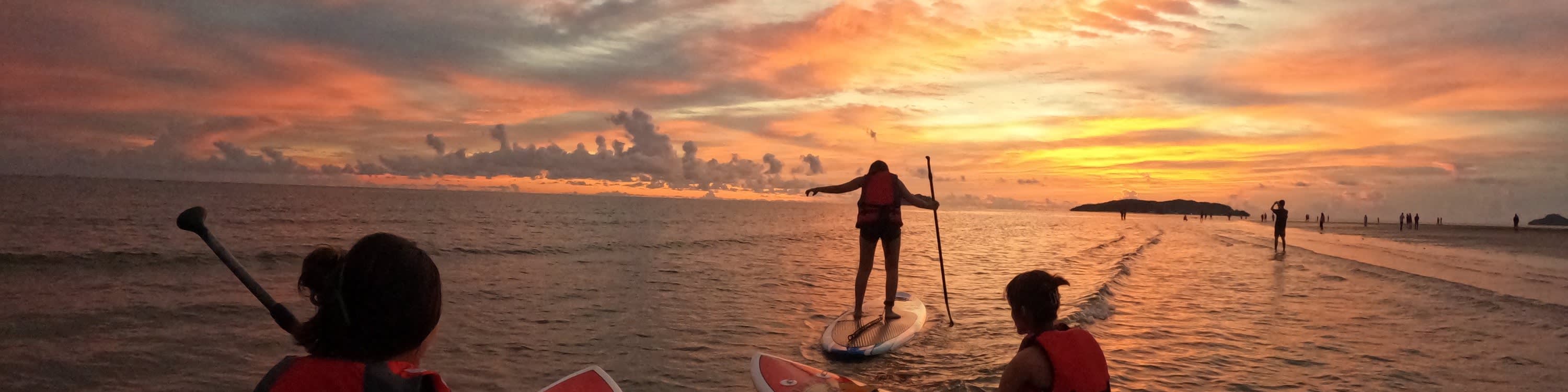▶[선셋] 프라이빗 픽업/샌딩 없는 스탠드업 패들보딩 - 이용요건 * 만 4세 이상만 본 액티비티에 참여할 수 있습니다. * 만 4-12세는 반드시 티켓을 소지한 성인을 동반해야 합니다. - 추가정보 - 중요 공지사항 * 본 액티비티는 물을 이용한 체험으로, 약한 비 또는 일반적인 강우 시에도 진행됩니다. * 개인적인 사유로 인해 예약 변경 또는 연기를 요청하는 경우, 1인당 MYR20의 추가 요금이 부과됩니다. 악천후(JPAM 해변 안전 깃발 또는 안전하지 않은 해상 조건)로 인해 예약 변경이 필요한 경우에는 추가 요금이 부과되지 않습니다. * 본 액티비티 운영 결정은 Borneo Exotika Adventure Sdn Bhd에서다음 사항을 고려하여 내립니다. * 해변 안전 깃발 시스템 (정부 해양 구조대 시스템: 녹색, 노란색, 빨간색) * 실제 바다 및 파도, 바람과 같은 기상 조건에 따라 달라질 수 있습니다. 고객 안전이 최우선이므로, 최종 결정은 번복할 수 없습니다. * "선셋 스탠드업 패들보드" 체험은 날씨의 영향을 받습니다. 석양 시간대에 맞춰 진행될 수 있도록 최선을 다하고 있지만, 구름이나 비 등 자연적인 요인으로 인해 석양을 보장할 수는 없습니다. - 규정 및 제한사항 * 거동이 불편하신 분에게는 본 액티비티를 권장하지 않습니다. * 본 액티비티는 고혈압, 간질 등의 의학적 질환을 앓고 계신 분에게는 권장하지 않습니다. * 임신부에게는 본 액티비티를 권장하지 않습니다. - 준비물 * 여벌의 옷 * 자외선 차단제 * 수건 - 복장 * 가볍고 편안한 의류 (가급적 드라이핏 소재)