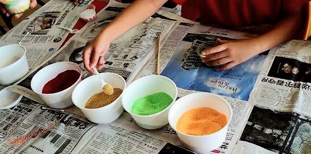 중국 및 아시아 장식 전통에서 영감을 받은 1.5시간 실습 워크숍에서 샌드 페인팅의 아름다움을 발견해 보세요. 참가자들은 겹겹이 쌓인 색색의 모래가 장식 예술에 어떻게 사용되었는지, 그리고 아름다움과 조화의 상징으로 병이나 항아리에 자주 전시되었는지 탐구하게 됩니다.