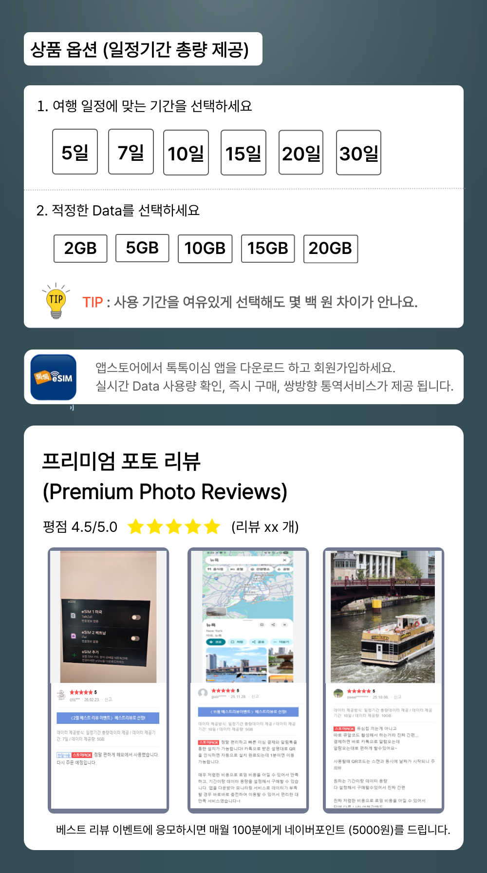 나의 데이터 사용 습관과 여행 일정에 맞는 데이터를 현명하게 선택해서 구매하세요.