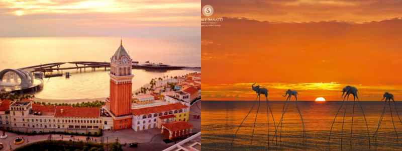 시계탑, 인피니티 풀, 키스 브리지, 다양한 상점가 등 멋진 건축물이 있는 아름다운 장소입니다.