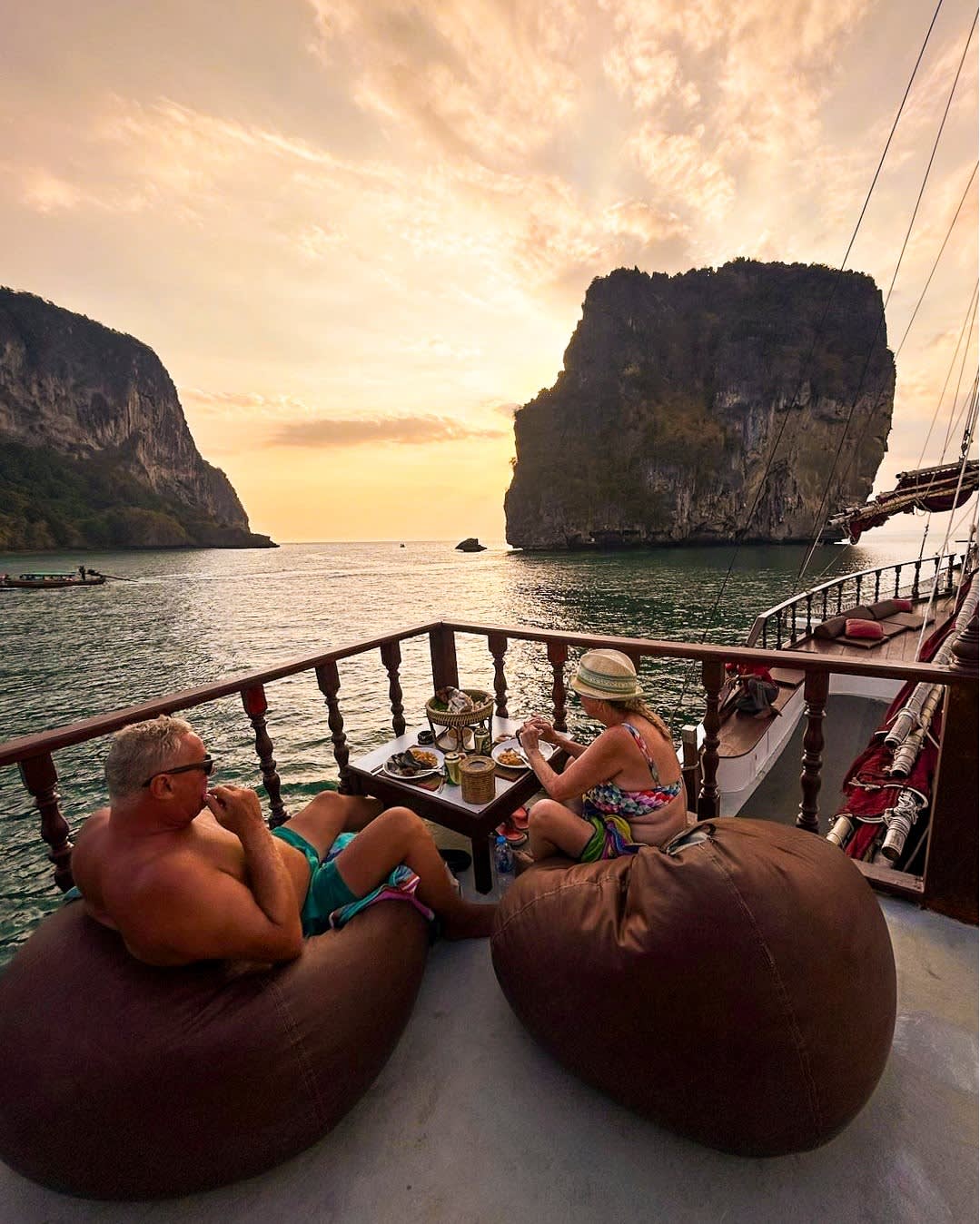 Experience the charm of sailing on our traditional wooden junk as you cruise through the stunning Andaman Sea. Enjoy the sea breeze, take in Krabi’s beautiful views, and relax whether you’re traveling solo, as a couple, or with friends. Spend your time swimming, snorkeling, or simply unwinding on deck before returning on board for a memorable dinner featuring fresh seafood and authentic Thai dishes. Capture the perfect photos as you sail into the sunset — a truly unforgettable moment on the water.