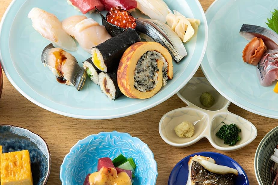 메뉴 중 특히 주목할 만한 두 가지는 달콤한 소스 조림 장어 니기리와 참깨, 달콤한 계란 오믈렛, 김이 들어간 에도마에 스타일 스시 롤인 노노지마키입니다.