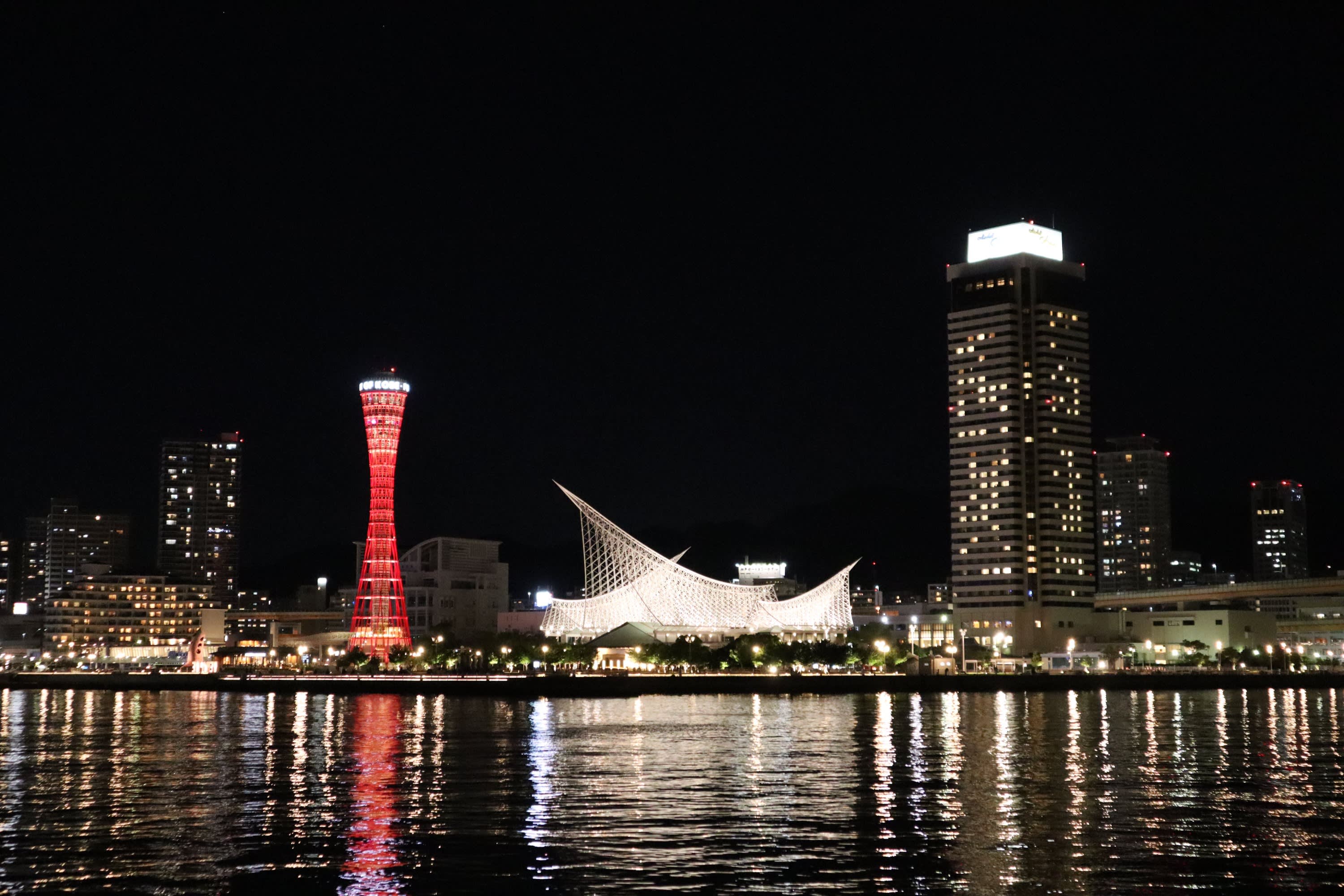 * 밤에는 고베 포트 타워의 아름다운 조명이 항구를 비추는 모습을 감상하세요.