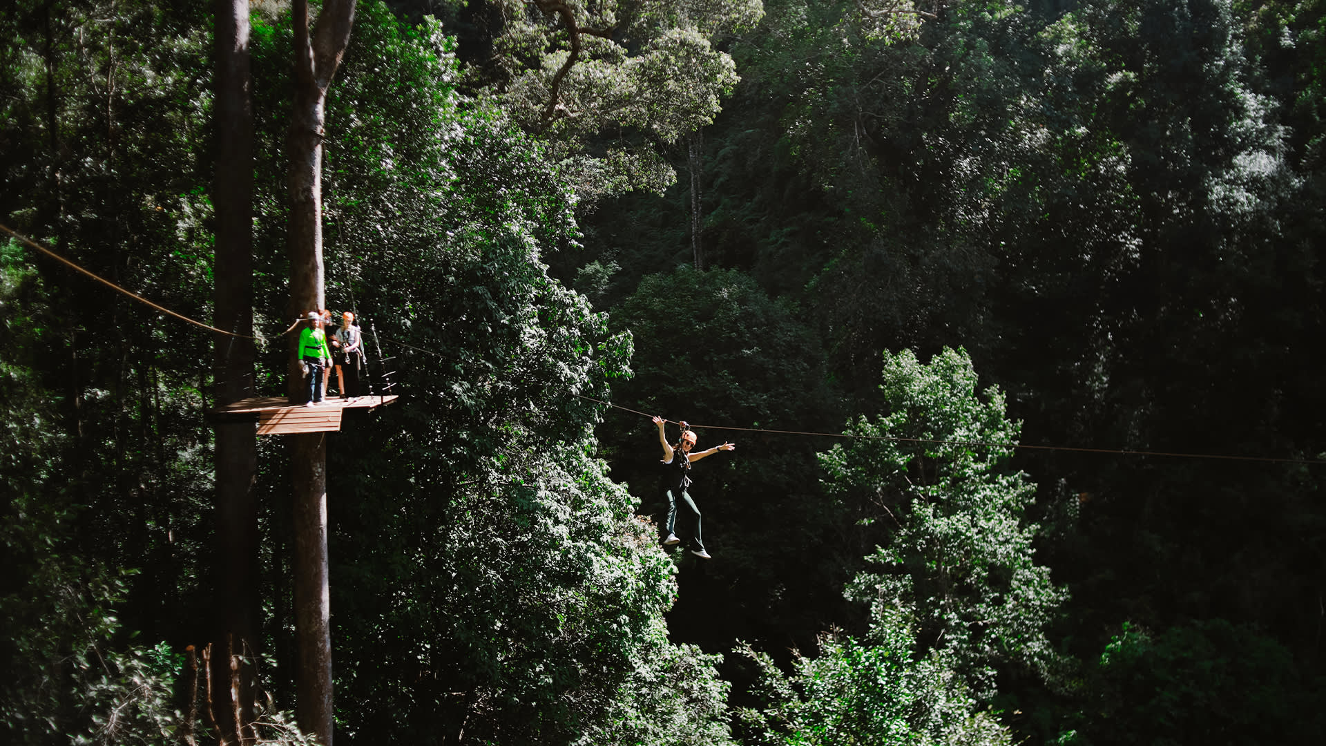 도이 사켓 산의 나무 사이를 가로지르는 스릴을 느껴보세요. 몸에서 솟아나는 에너지의 파동을 느껴보세요. 1,500년 된 숲 위를 날아다니며 탁 트인 계곡 전망을 감상하세요. 아름다운 태국 열대우림의 숨 막히는 경치를 감상하세요. 전문 가이드와 공인된 안전 장비로 안전하게 즐기세요. FLYING TIGER와 함께 하루를 보내며 수백 년 된 정글 캐노피를 가로지르고 자연의 얼굴을 만져보세요. 스릴 넘치고 즐겁고 안전하게