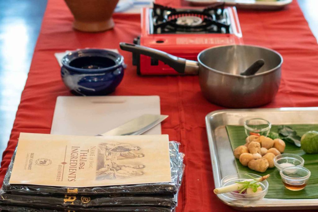 하루는 열정적인 강사가 태국 요리의 재료와 기법에 대해 설명하는 이론 수업으로 시작하여 여러분이 만들 레시피를 꼼꼼히 시연합니다. 이론 수업이 끝나면 앞치마를 두르고 필요한 모든 재료와 도구, 버너, 웍을 준비해 스테이션으로 향하세요.