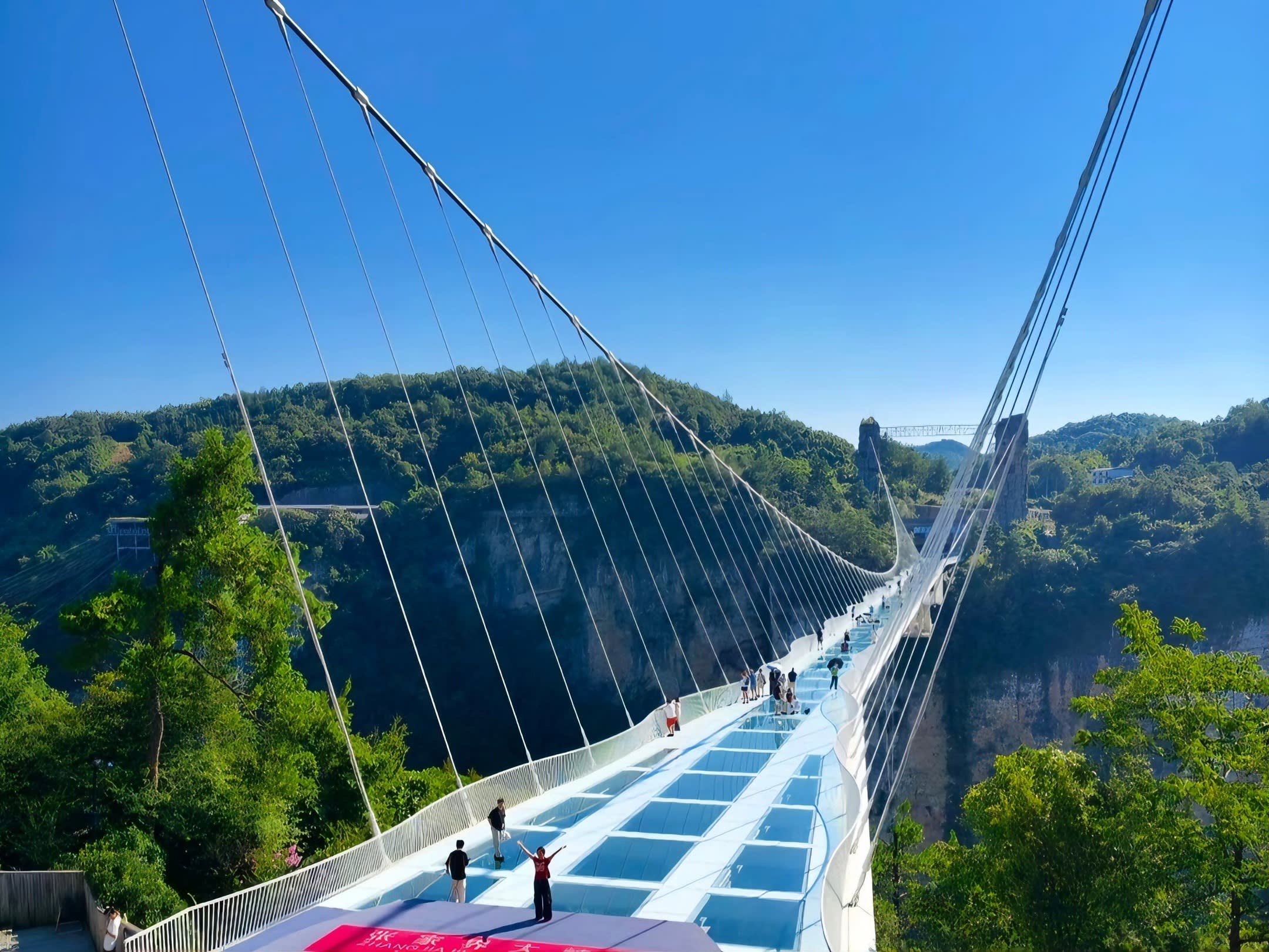 * 【전체 투명 유리 다리】 장가계 대협곡은 산, 물, 동굴이 한데 어우러져 장가계 지형의 박물관입니다.