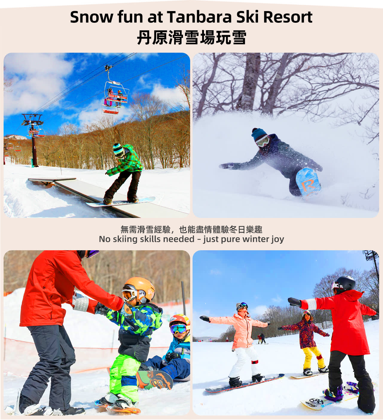 * 겨울 한정: 단바라 스키장에서 아이와 함께 눈놀이를 즐기며, 눈싸움하고 눈사람을 만들며 즐거운 시간을 보내세요.