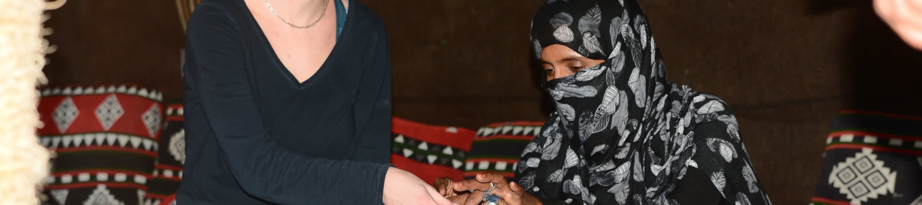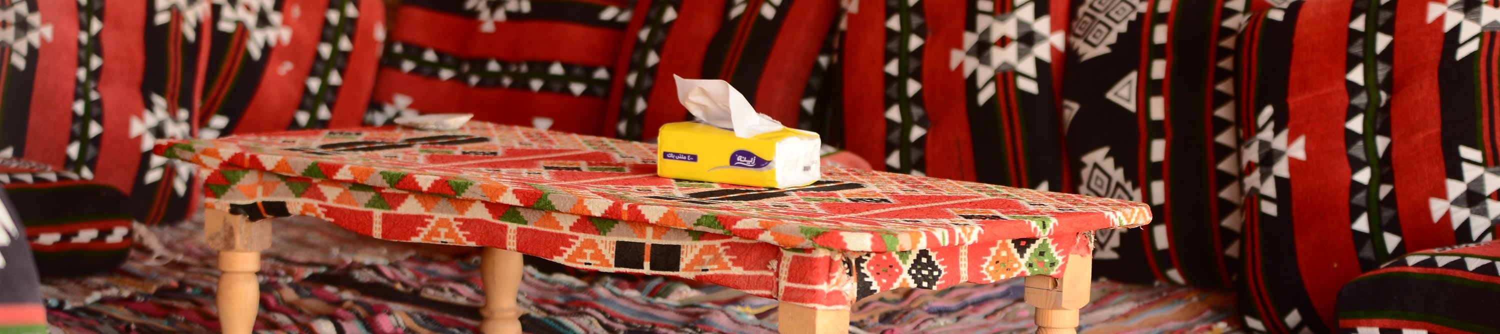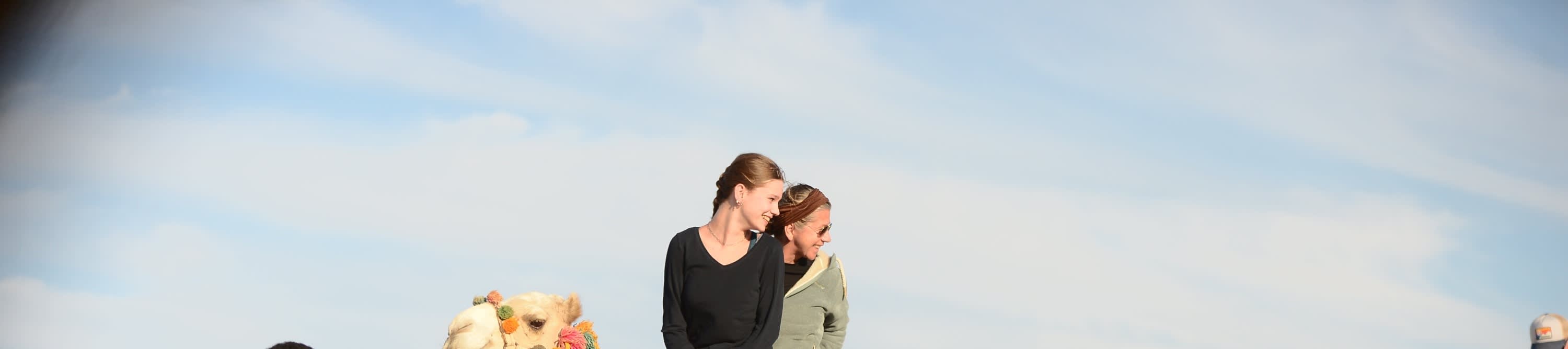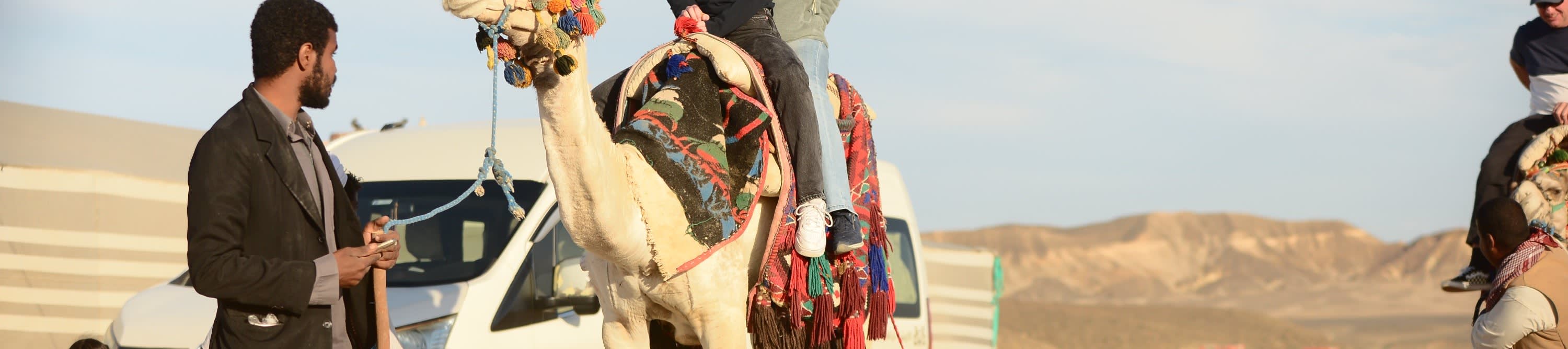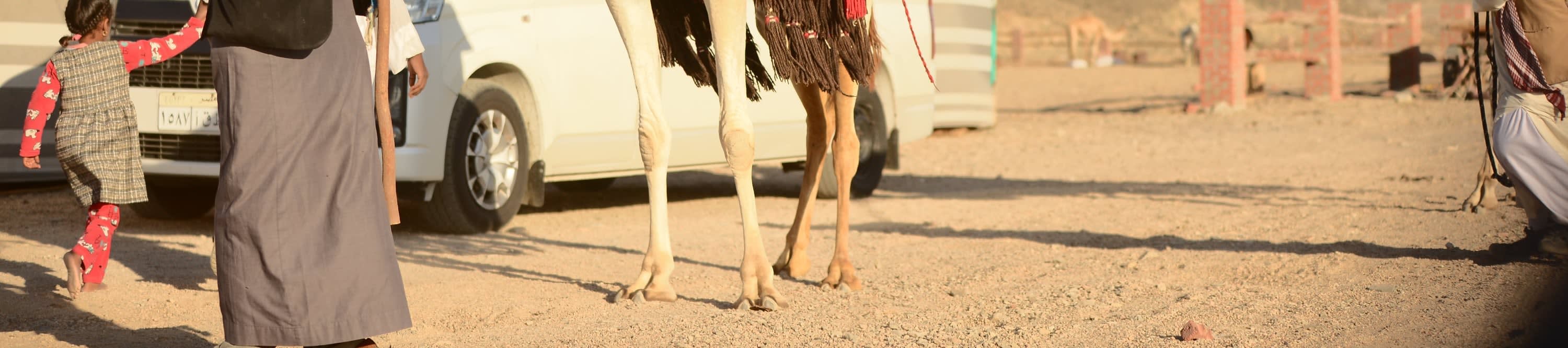 숙소에서 에어컨이 설치된 밴을 타고 파디 계곡에 있는 베두인 텐트 "아밥다 캠프"까지 이동합니다. 베두인 텐트에 도착한 후 30분간 낙타를 탈 것입니다. 낙타를 탄 후 베두인 텐트에서 휴식을 취할 수 있습니다. 환영의 의미로 "베두인 차" 한 잔을 받으시고 베두인 사람들의 소박한 생활 방식에 대한 설명을 들으실 것입니다.