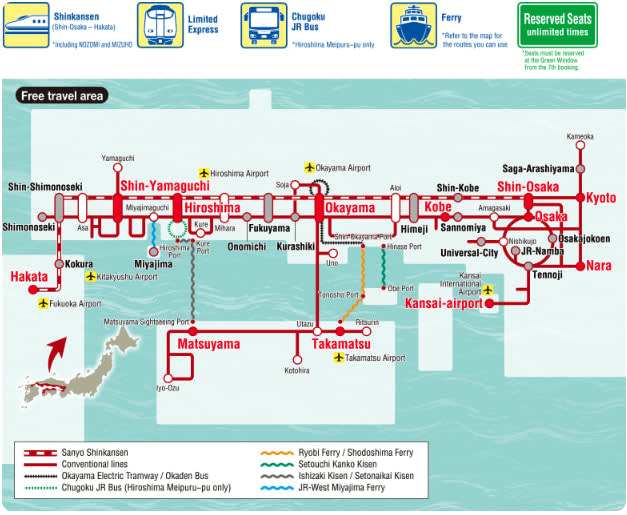 세토우치 지역을 더더욱 실속있게 둘러볼 수 있는 방법! - 간사이부터 후쿠오카까지 다양한 장소를 연속 7일 동안 자유롭게 오갈 수 있어요.