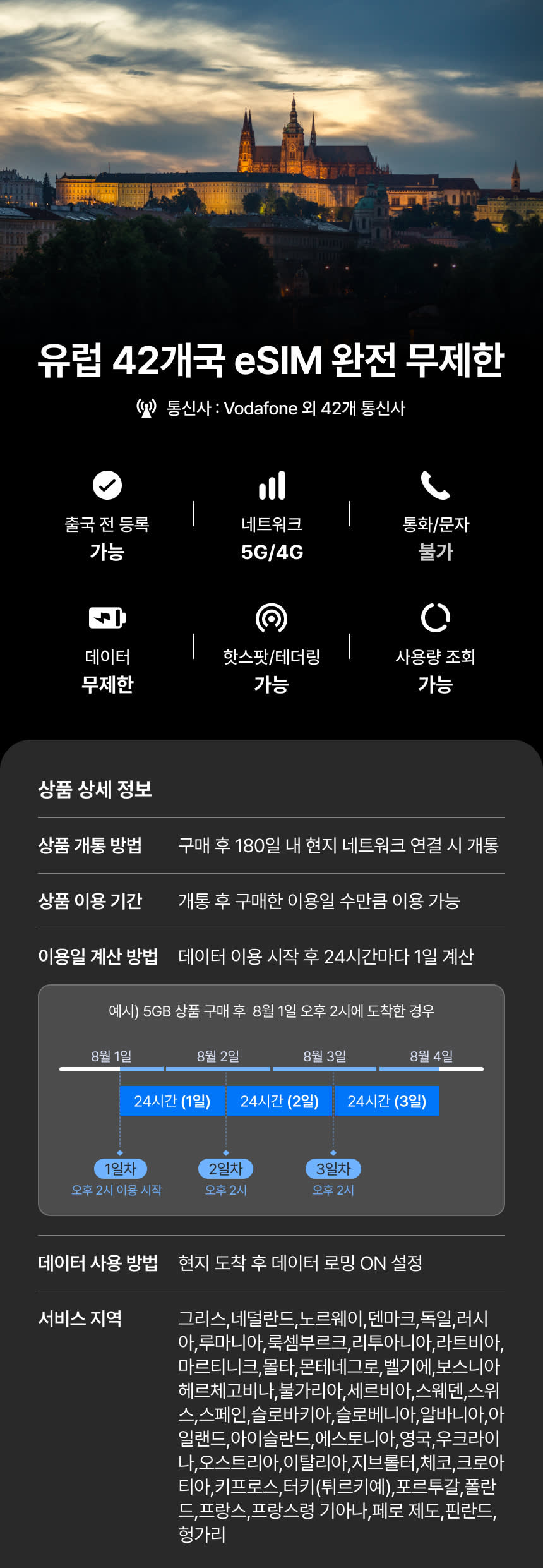 유럽 42개국 이심 eSIM 매일 완전 무제한 데이터