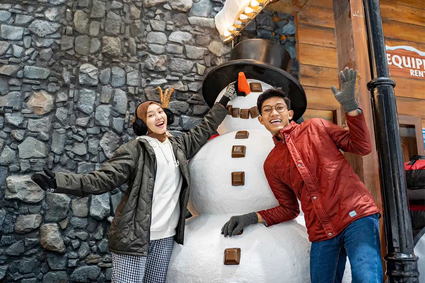 인도네시아의 열대 환경에서 실제 눈과 얼음 조각으로 겨울 분위기를 만끽하세요.