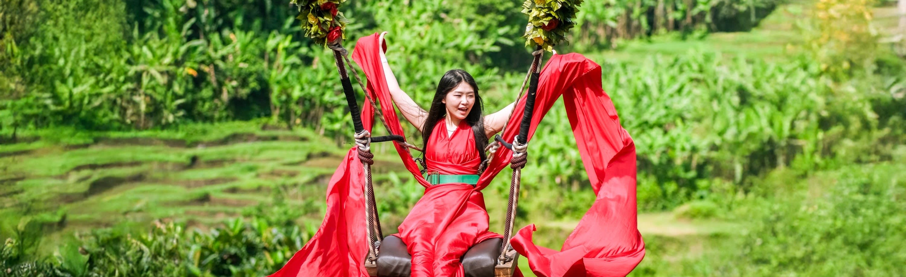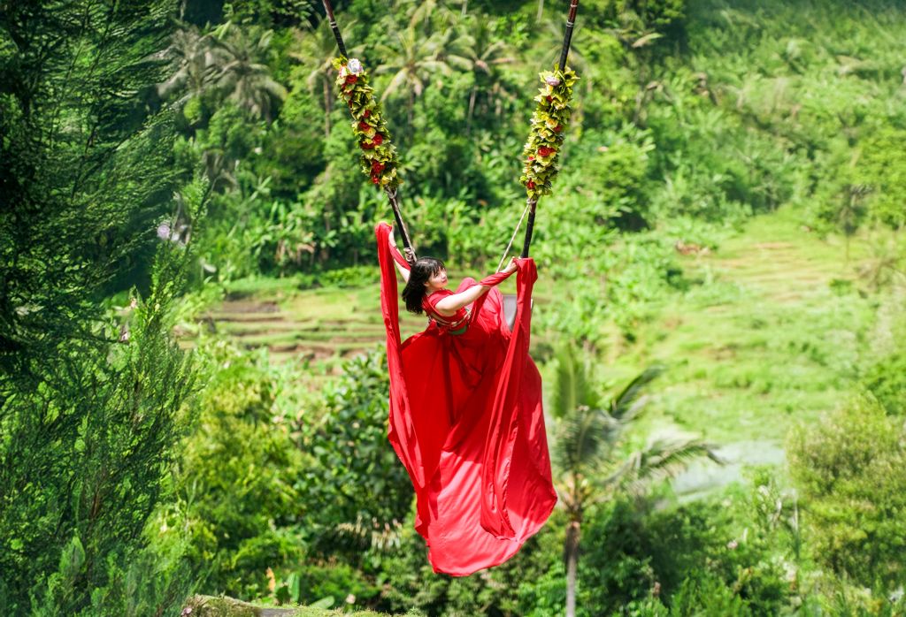 * 울창한 열대 계곡 위에서 유명한 우붓 정글 스윙을 경험해 보세요.