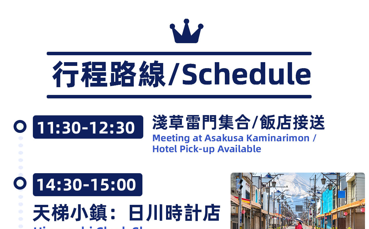 ▶자체 집합: 아사쿠사 가미나리몬 앞 - 이용요건 * 공지: 영유아 및 아동도 탑승객 인원수에 포함되어야 합니다. - 추가정보 - 규정 및 제한사항 * 임신부에게는 본 액티비티를 권장하지 않습니다. - 편의성/접근성 * 요청시 아동용 카시트를 이용할 수 있으며, 1개까지만 무료로 제공됩니다. * 유모차 이용이 가능합니다. - 차량 & 수하물 정보 * 차량 옵션: 9인 그룹 - 밴 * 수하물 수용: 표준 크기 수하물 1개