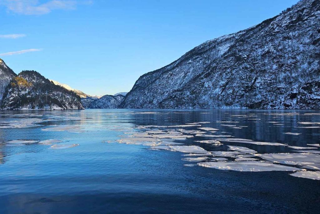 가장 추운 날에는 피오르드에 얼음이 있어 특별한 스릴을 더할 수도 있습니다. 그런 다음 선장이 겨울 경치 속에서 피오르드의 마법 같은 경험을 할 수 있는 다른 루트를 선택해 안내합니다.