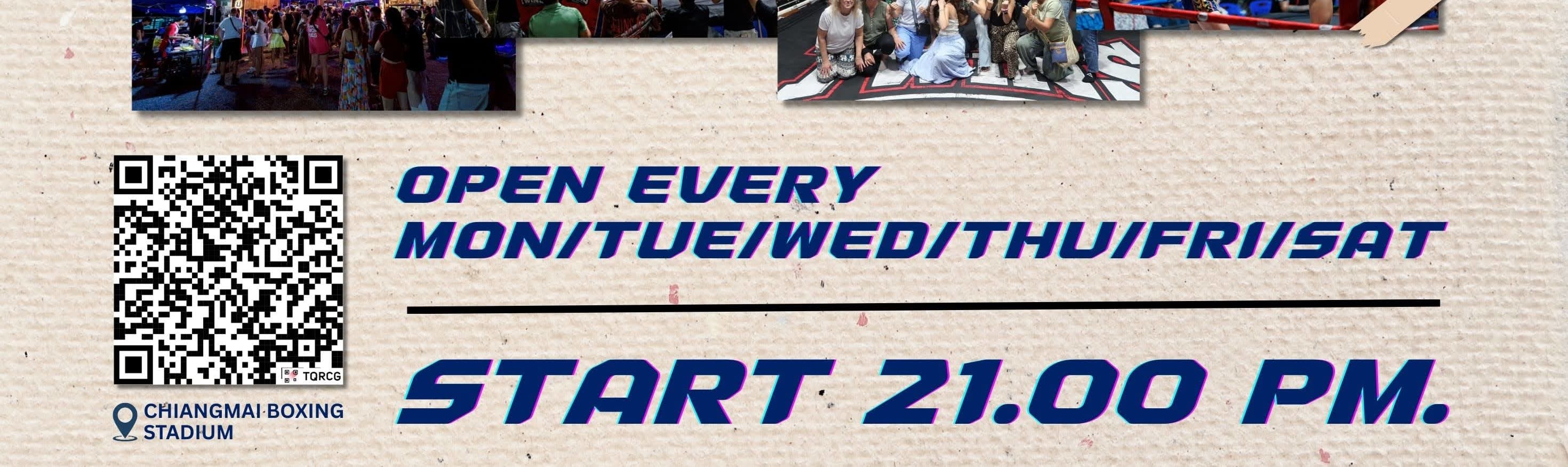 편리한 위치와 흥미진진한 경기: 치앙마이 중심부에 위치한 이 경기장에서는 매일 밤 6~7개의 스릴 넘치는 경기가 펼쳐지며, 라이트급부터 헤비급까지 다양한 체급의 경기를 볼 수 있습니다. 일요일을 제외하고 매일 운영됩니다.