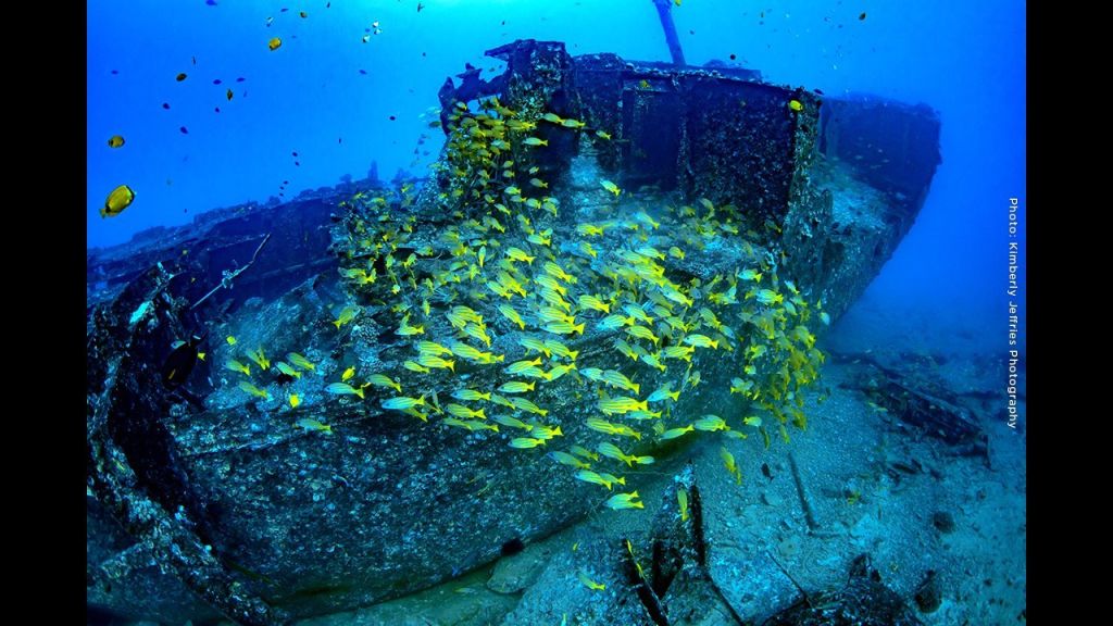 인공 어초와 난파선을 비롯한 다양한 해양 생물, 열대어, 산호초를 가까이에서 관찰합니다.