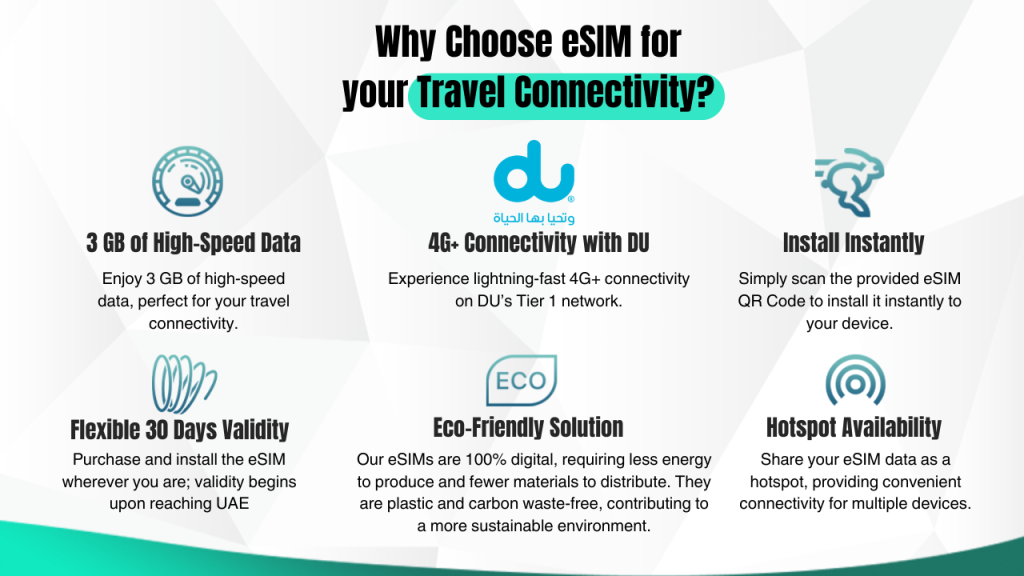아랍에미리트에서 끊김 없는 인터넷 접속과 빠른 현지 데이터를 위한 eSIM의 편리함을 경험하세요. eSIM 호환 장치에 Airhub 앱을 다운로드하기만 하면 실제 SIM 카드 없이도 원활한 연결을 즐길 수 있습니다. 여행 중에도 친구 및 가족과 연결 상태를 유지하여 어디를 가든 항상 연락할 수 있습니다.