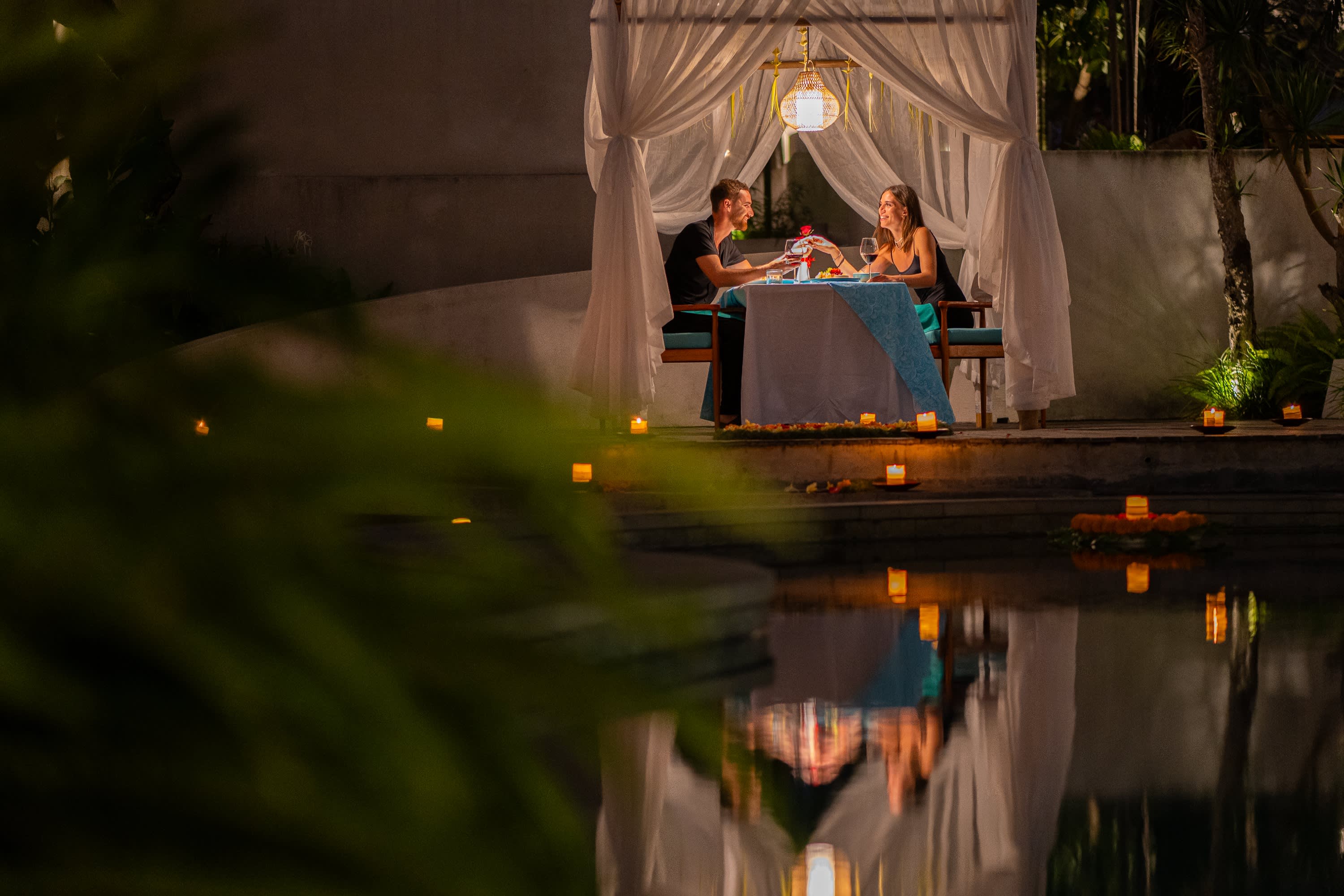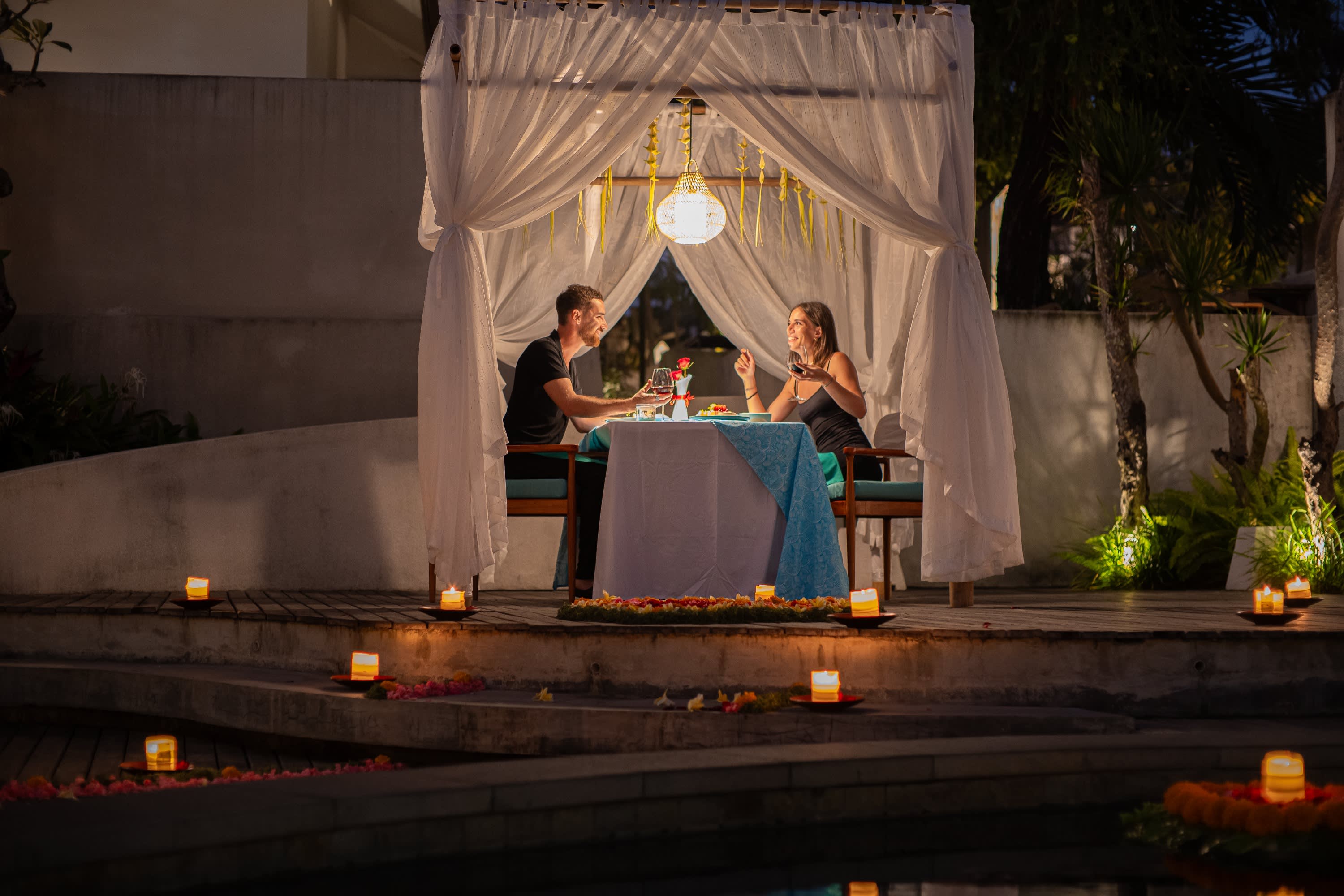 블루 카페 캉구는 함께 식사하고 싶은 누구에게나 열려있습니다. 아름다운 수영장이 내려다보이는 실내 및 야외 식사를 제공하는 시그니처 레스토랑에서는 누구나 환영합니다. 시원한 발리의 밤, 또 어디로 가고 싶나요?